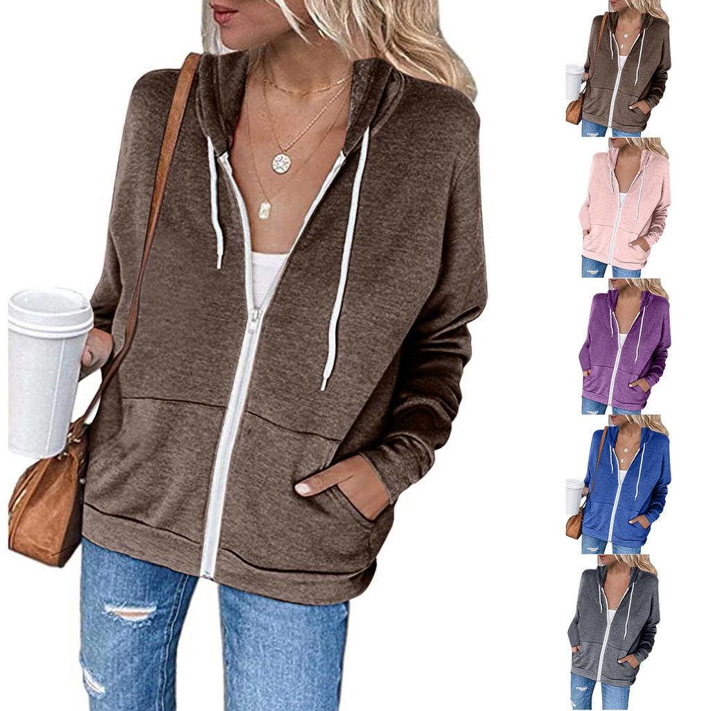 Hoodie For Women Lightweight Zip Up Jacket Plus Size Long Sleeve Hooded Sweatshirt Drawstring Slim Fit Basic Thin Coat