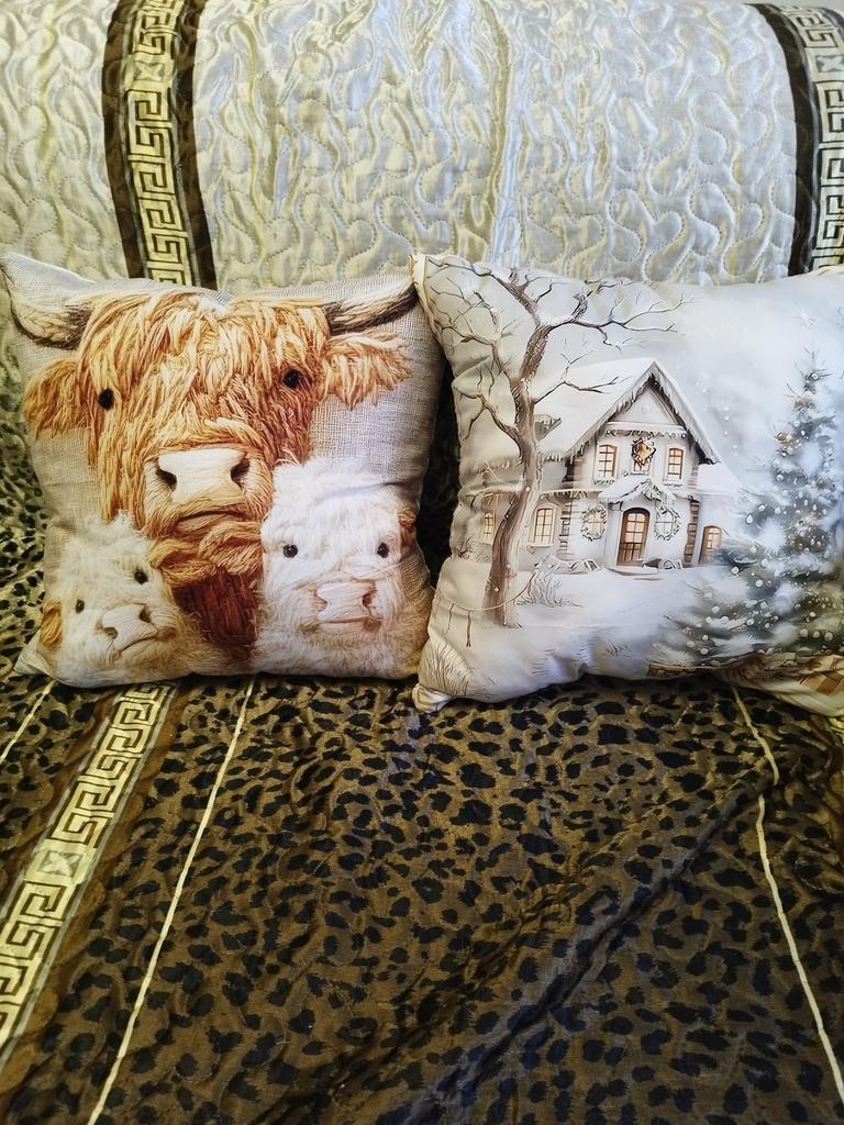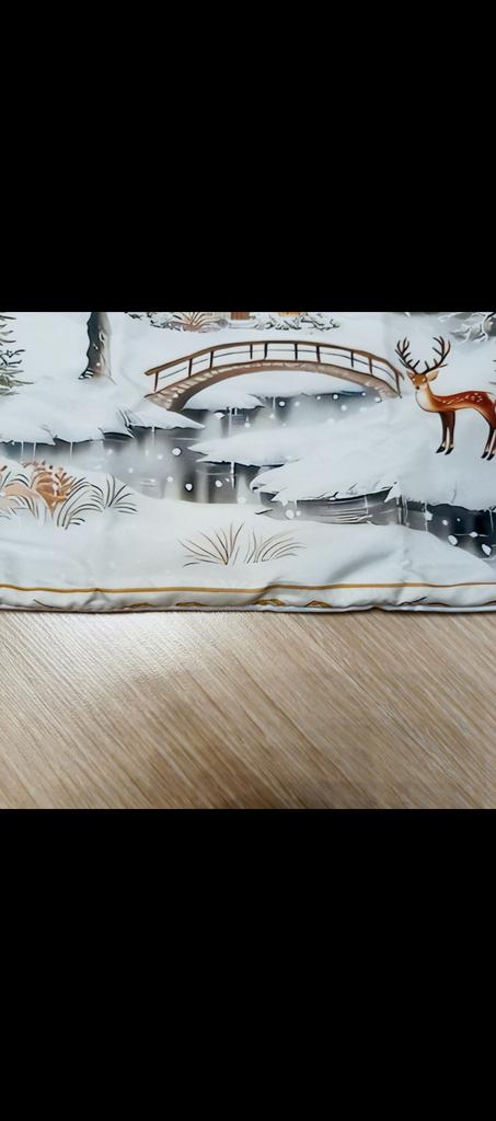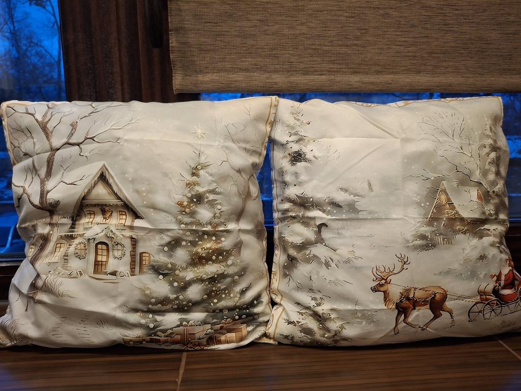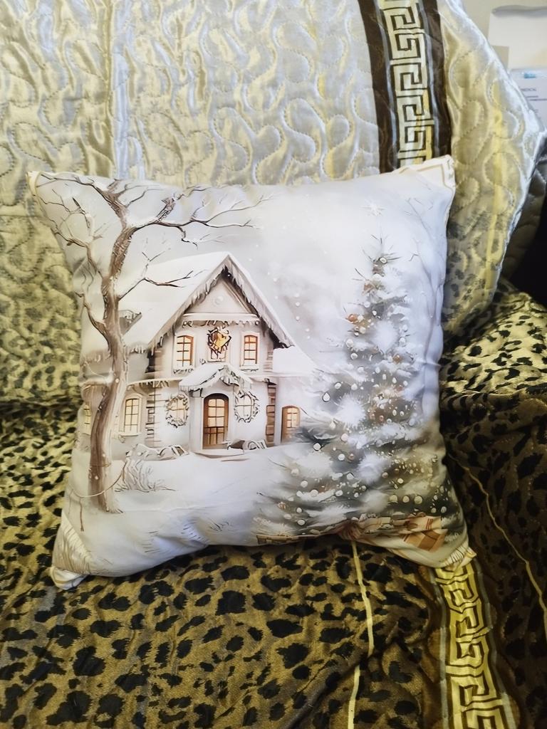 Arrived after the New Year, carefully packaged, look very good, the pattern is wonderful, brings coziness and warmth to the home, not linen, the material is pleasant to the touch, closes with a zipper, but it is not hemmed, and therefore during washing, the material near the zipper will fray.