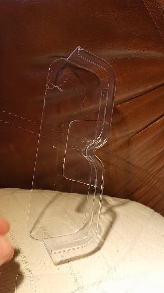 Not glass at all, ordinary plastic, and it arrived a little scratched. But it stuck well with the adhesive, hasn't fallen off yet.