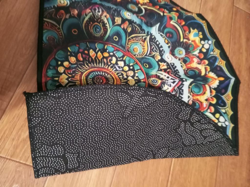 Thin, slides a bit on the tile. Not very