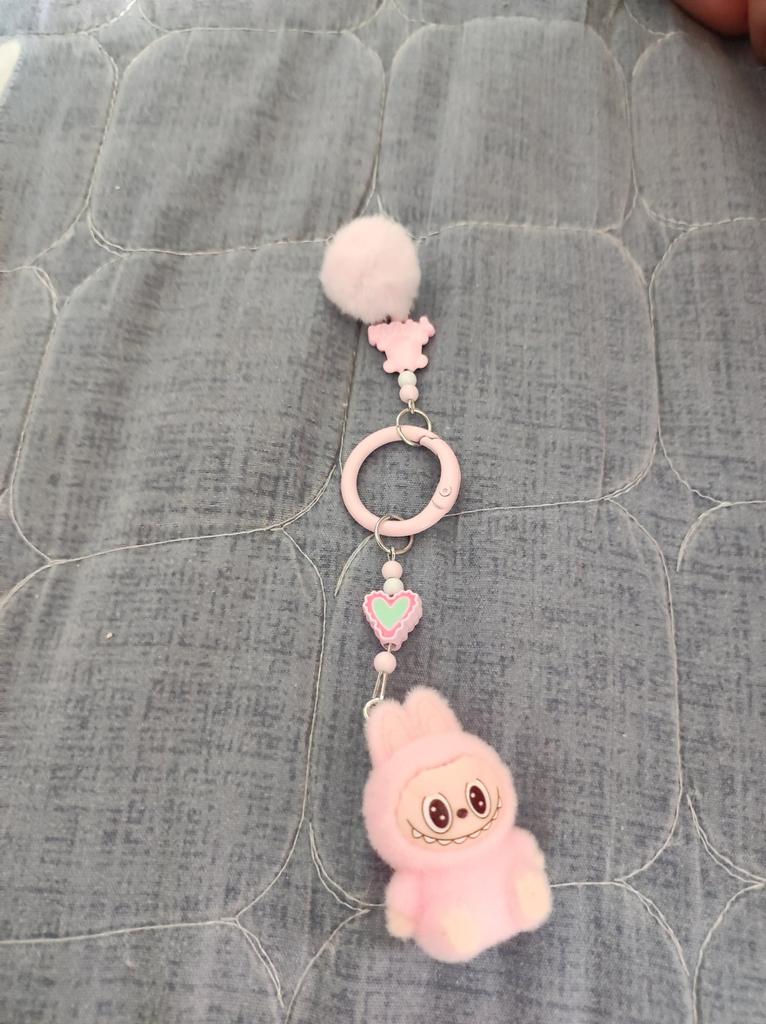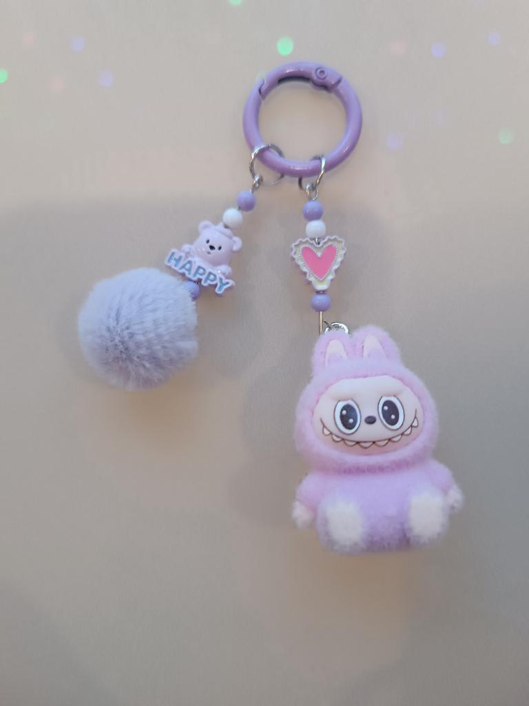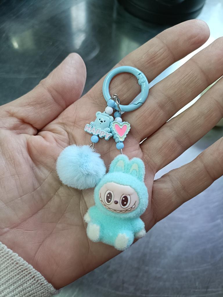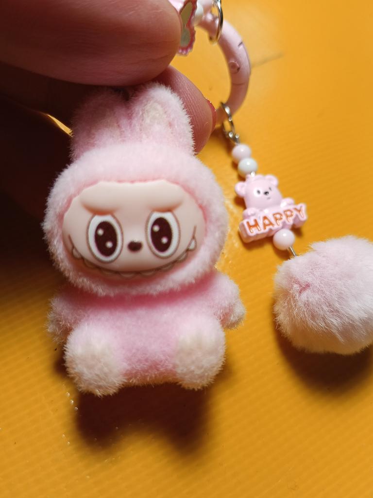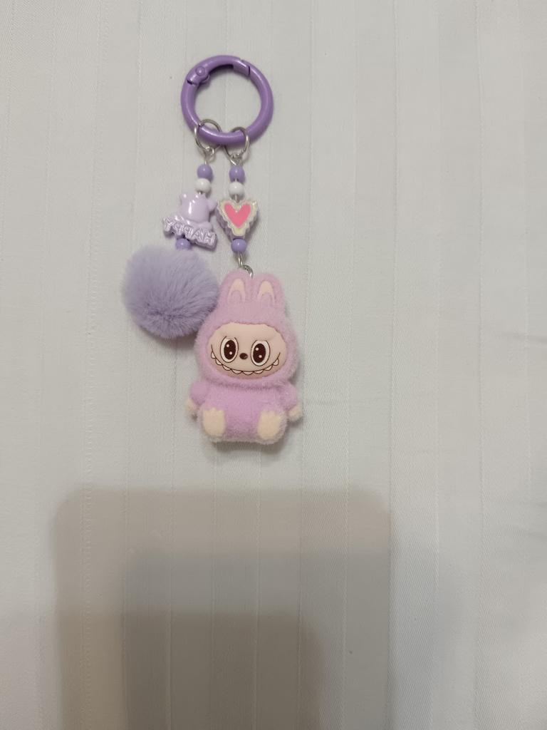 New Labubu Plush Mini Keychain Anime Cartoon Keyring Charms Kawaii Cell Phone Backpack Decoration Car Key Accessories Gifts