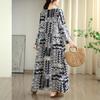 DIMANAF New 2025 Women Plus Size Spring Long Dress Loose Basic Vintage Oversize Long Sleeve Maxi Floral