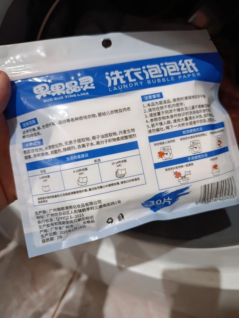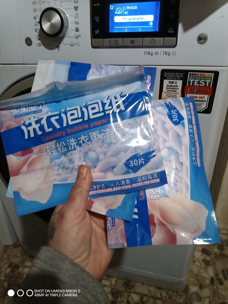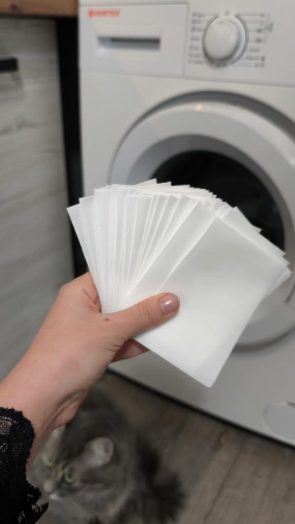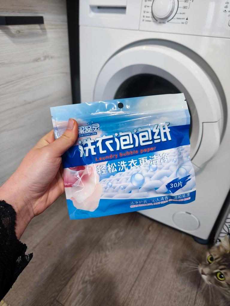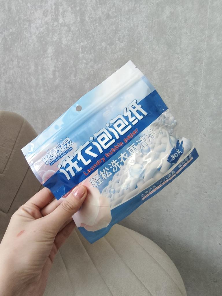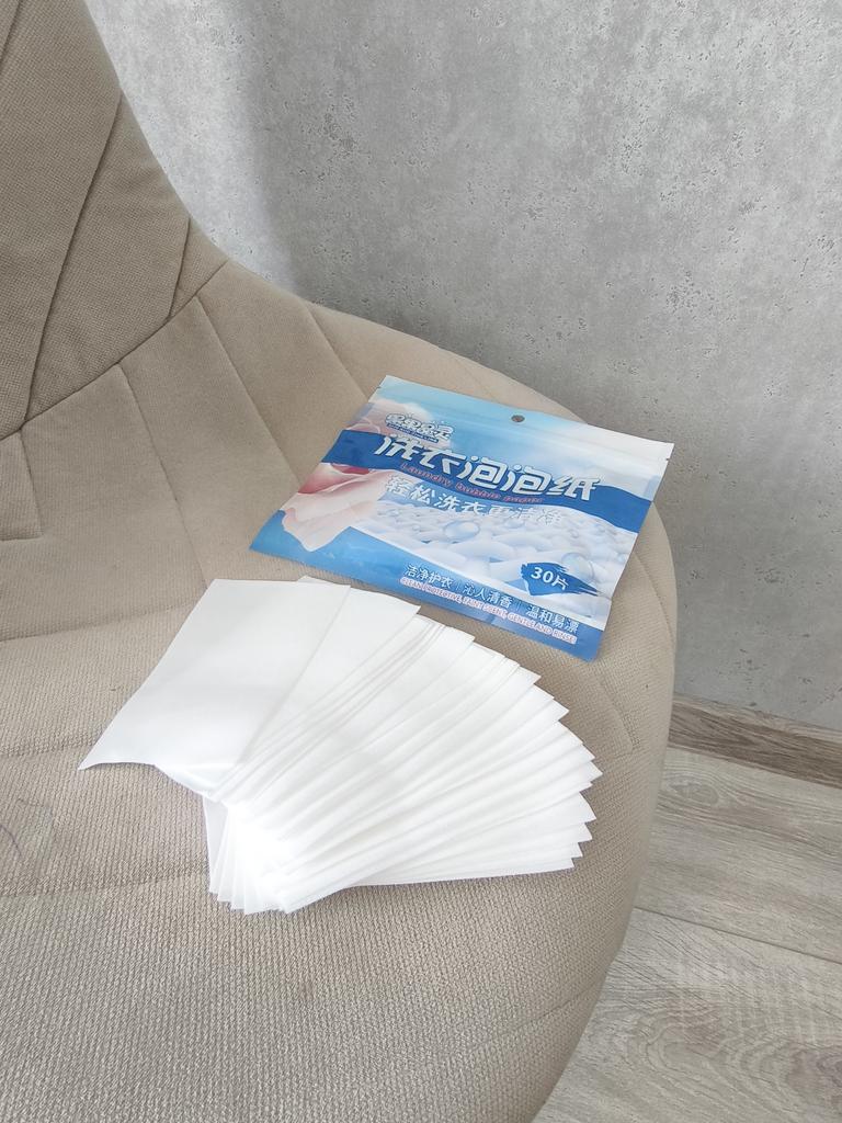 The smell is good, I will try it. For a wash - about 3-4 kg, I took 2 sheets. After washing, there is no smell on the clothes. I didn't like washing with the sheets because there was no foam, no smell, and I rinsed the black clothes again. I don't know why this happened, because besides these sheets, I used a conditioner in granules in a pouch, also bought on Joom. Thank you!