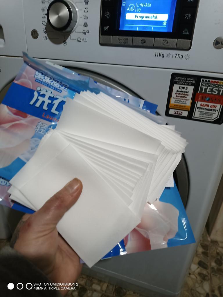 I already have more than 5 packages of this detergent ๐ A wonder ๐ I don't buy another detergent since I discovered it, it's super practical ๐ช There is no waste ๐ Dissolves instantly ๐ช Very foamy ๐ซง I'm simply delighted ๐ฅฐ Effective โ 100% recommended ๐ฏ Correct packaging ๐ฆ Fast shipping โ๏ธ I also recommend the same sheets for ๐งน floor cleaning, although I use it for everything, one sheet is dissolved in half a bucket ๐ชฃ of water ๐ง and it is suitable for domestic cleaning ๐ช