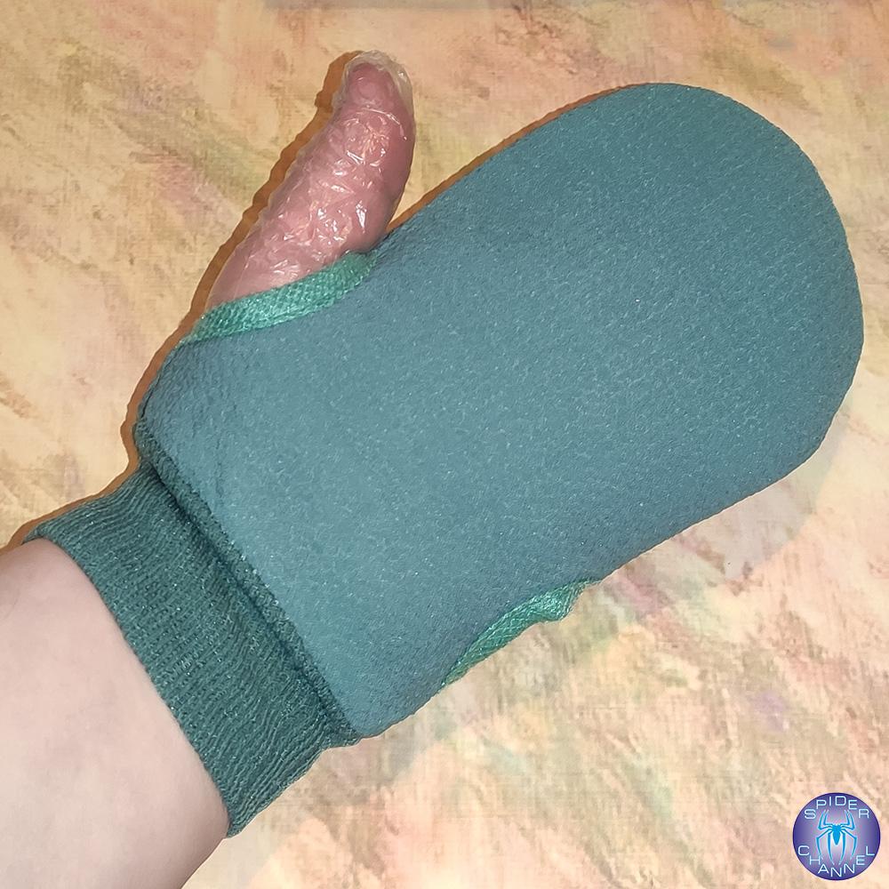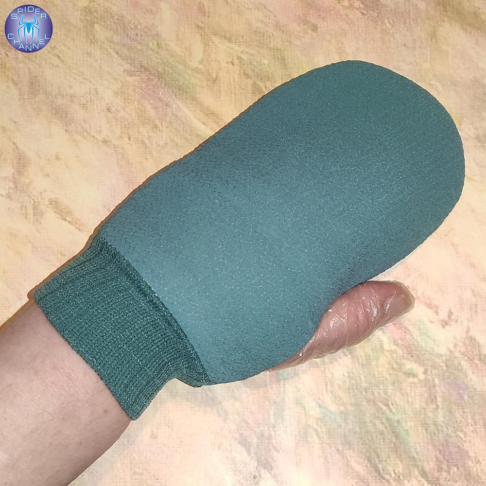 Bath glove Will fit on the right or left hand Comfortable, fit a large palm It does its job, exfoliates but doesn't scratch Lightweight, dries quickly