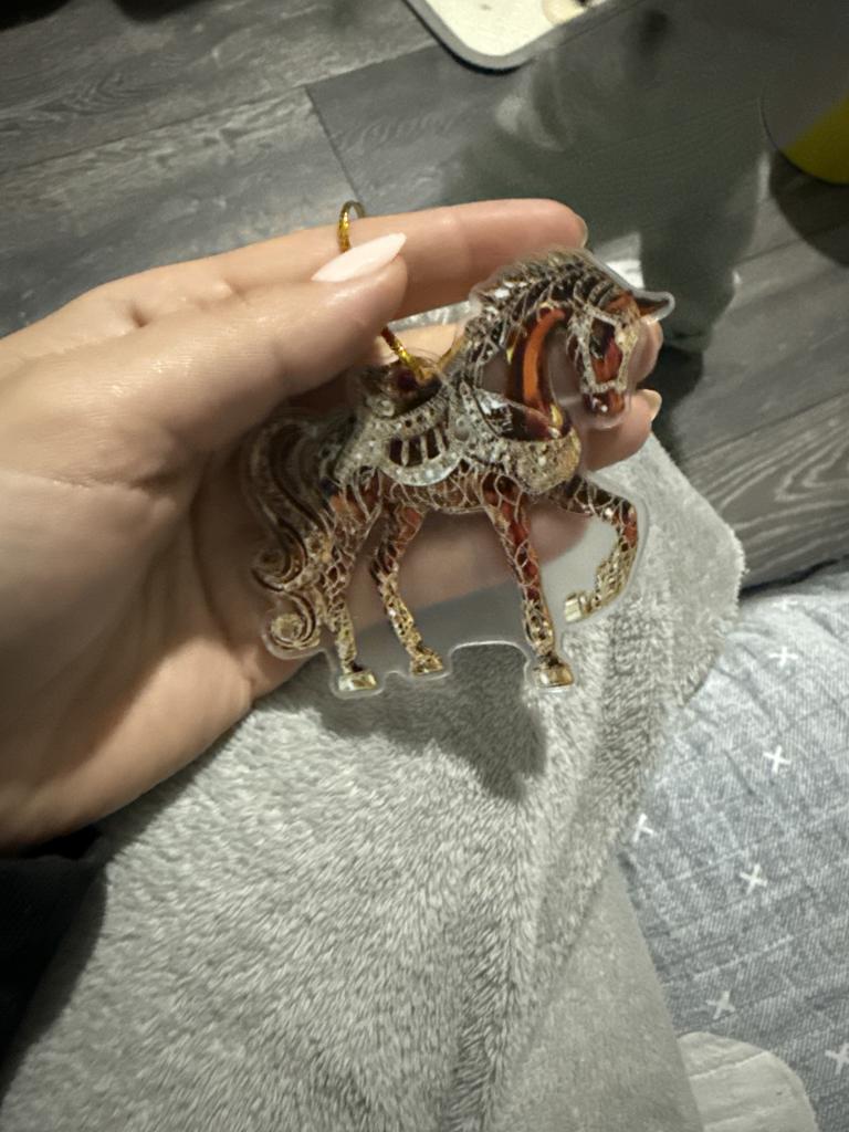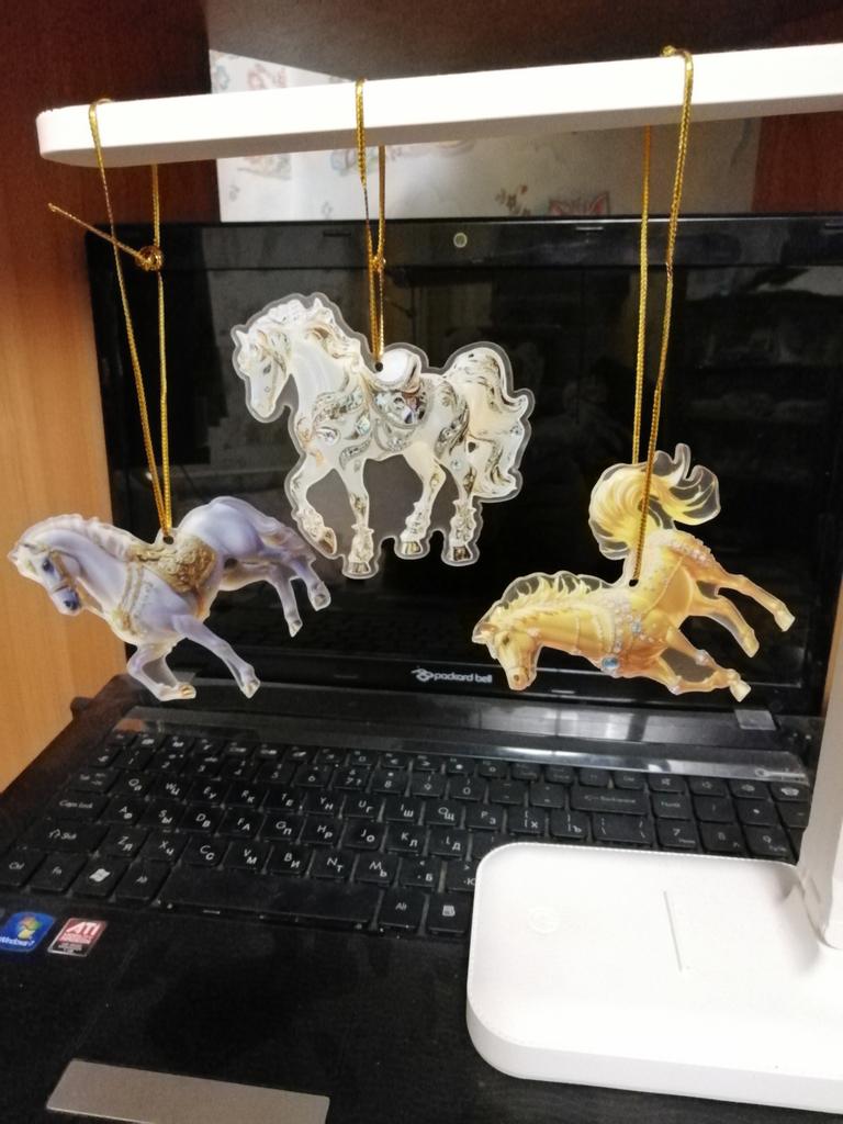 I was waiting for the order for the New Year since October. The order arrived after the New Year. I was disappointed with the order, it's just ordinary plastic with a sticker of a horse. There are no rhinestones.