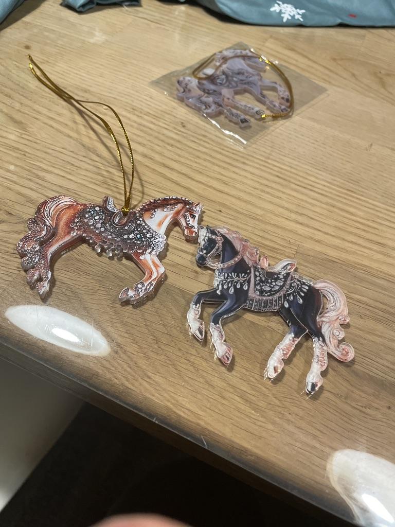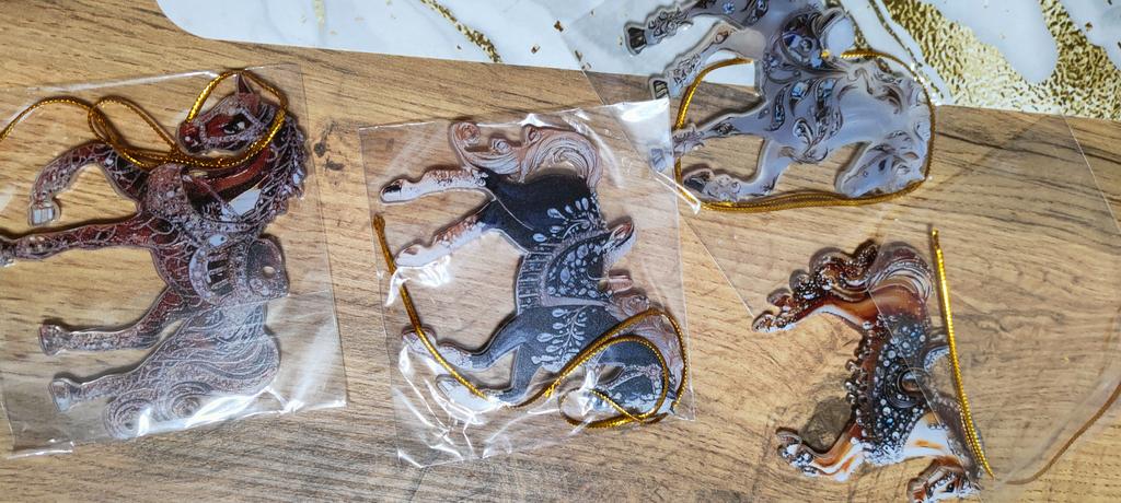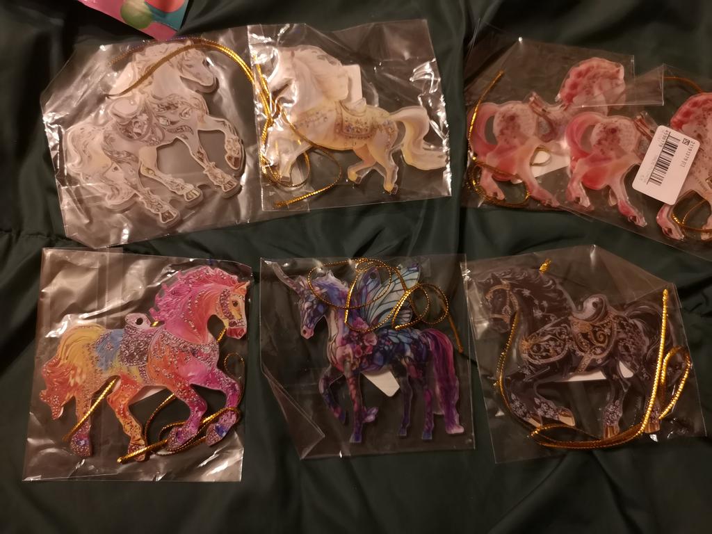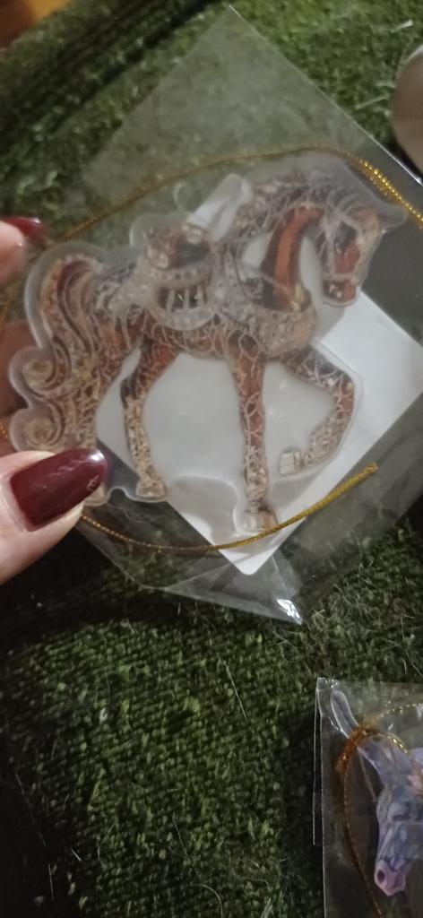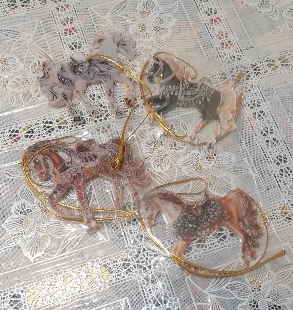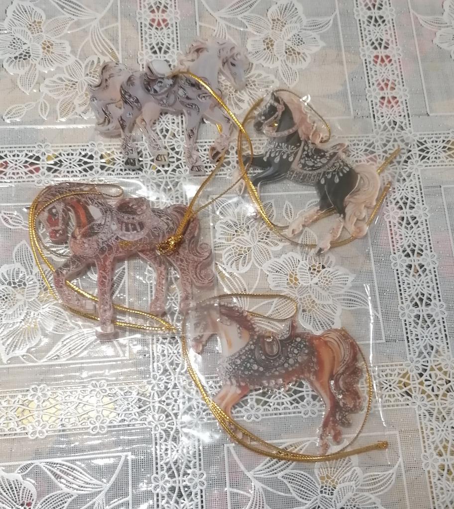Very colorful, miniature. I bought several different ones. They will, for sure, decorate the Christmas tree. And you can gallop into the new year. Happy New Year to all.