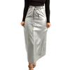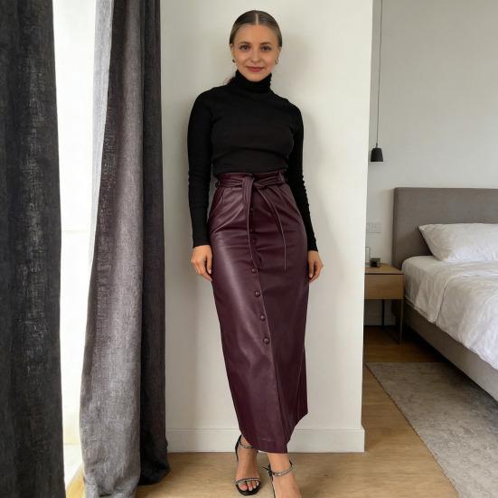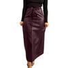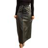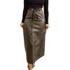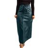 Women's skirt is crafted from soft, breathable faux leather, ensuring all-day comfort. Featuring a stylish front slit design, it allows for unrestricted leg movement while adding a chic touch.