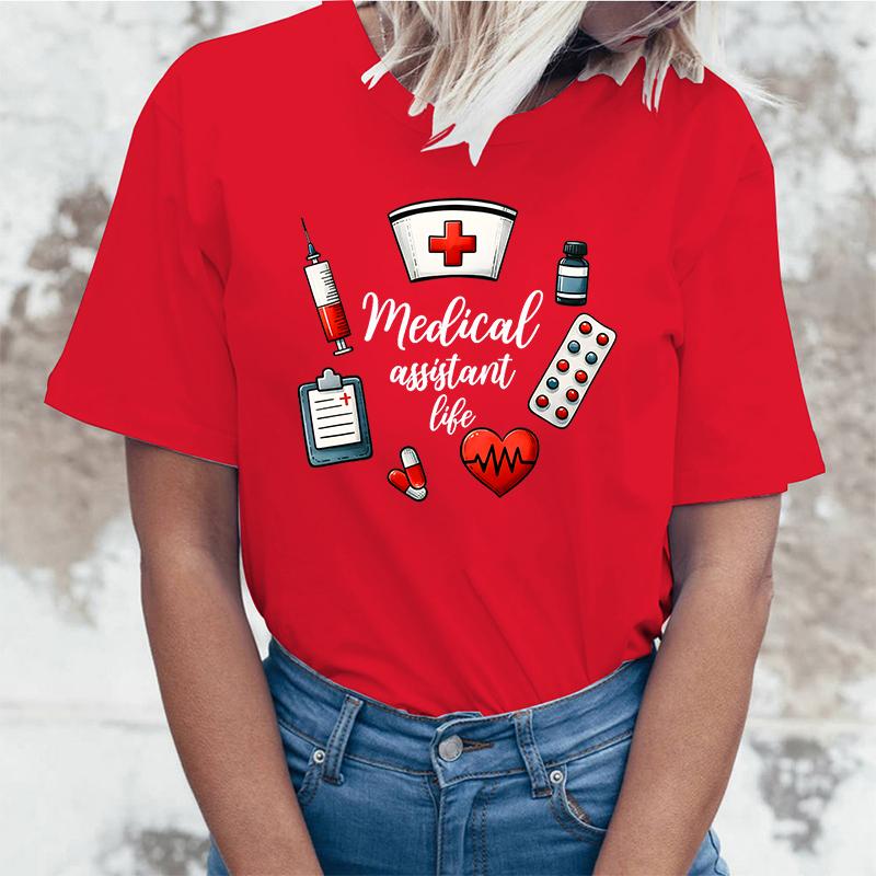Medical Assistant Life Letter Print Clothes Women Summer Short Sleeves Fashion Summer Casual T-Shirt Tops