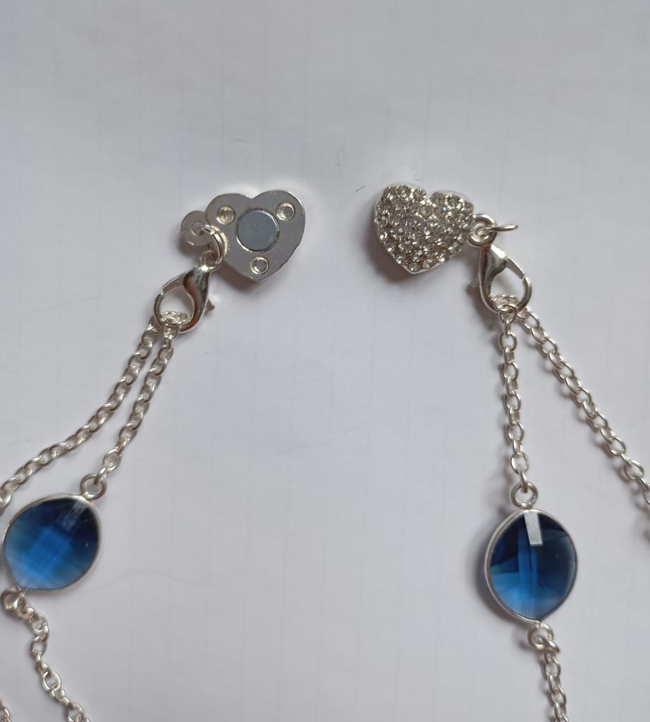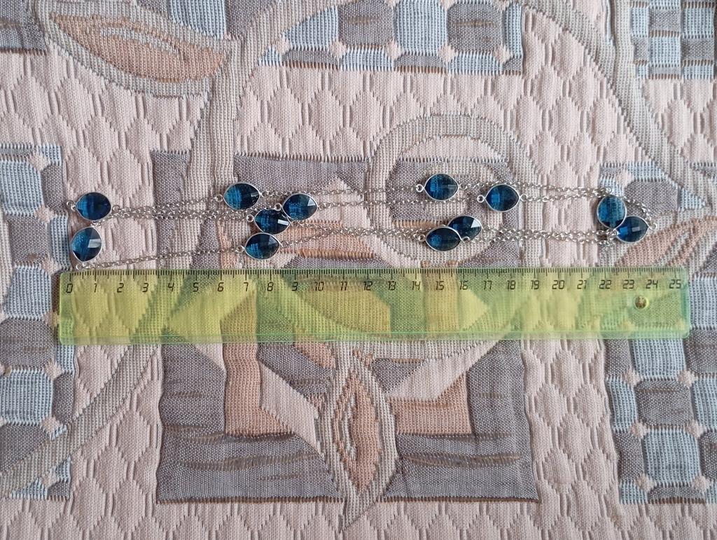 A beautiful delicate piece of jewelry, stones in a thin setting - you need to handle this jewelry carefully so that the inserts do not fall out. I am happy with the purchase. The color is more delicate in the light, the photo changes the color of the stones. I will wear this piece of jewelry under a shirt with an unbuttoned collar, in two rows, for this I use a detachable clasp (I use it for several items, one) I am happy with the purchase.