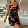 Women's Flora Print Silk Slip Dress Backless Sleeveless Dress