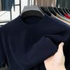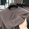 Men's 100% Wool Round Neck Sweater - Solid Color, Long Sleeve, High-End Casual Base Layer for Autumn/Winter