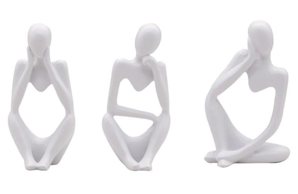 Queen-b Thinker Figurine, Set of 3, Modern Art Sculpture, Nordic Style Decor, Stylish Entryway, Living Room, Bookshelf, Tabletop Ornament (White)