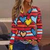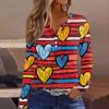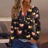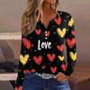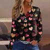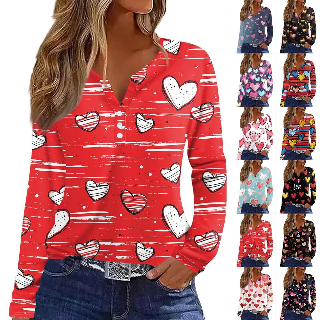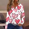 Women's T Shirt Tee Valentine's Day Printed Button Long Sleeve Tunic Daily Weekend Fashion Basic V- Neck Regular Top