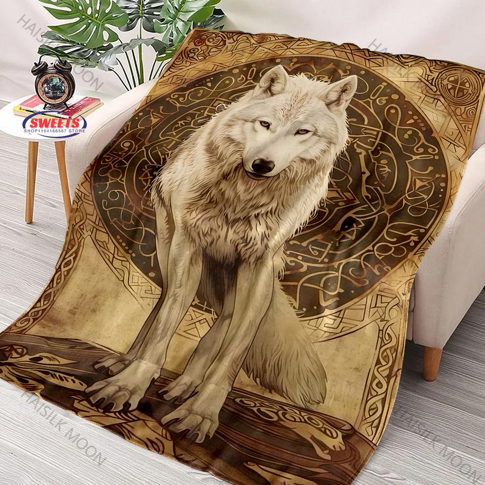 6 Sizes Mysterious Black Wolf Wolf Totem Print Flannel Blanket for Son Husband Dad,Super Soft Fluffy Bedroom Sofa Office Blanket