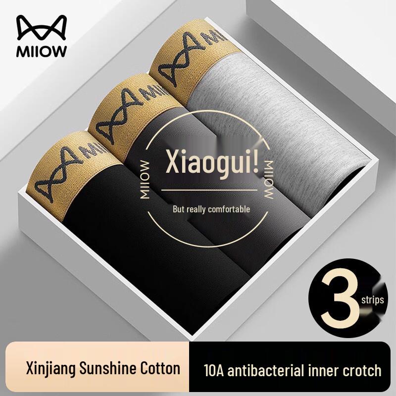 Mao Ren Men's Pure Cotton Antibacterial Boxer Briefs 3-Pack