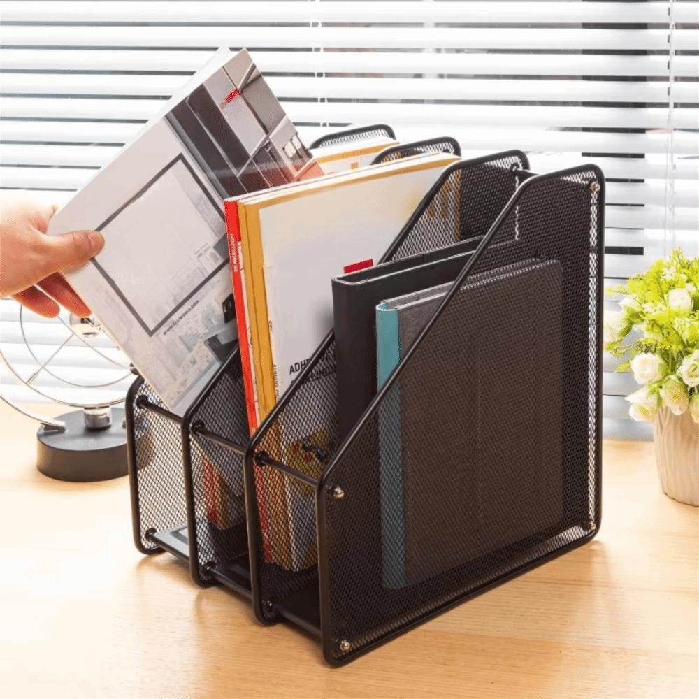 Stationery Organizer Metal File Rack Wire Mesh File Storage Box Office Supplies