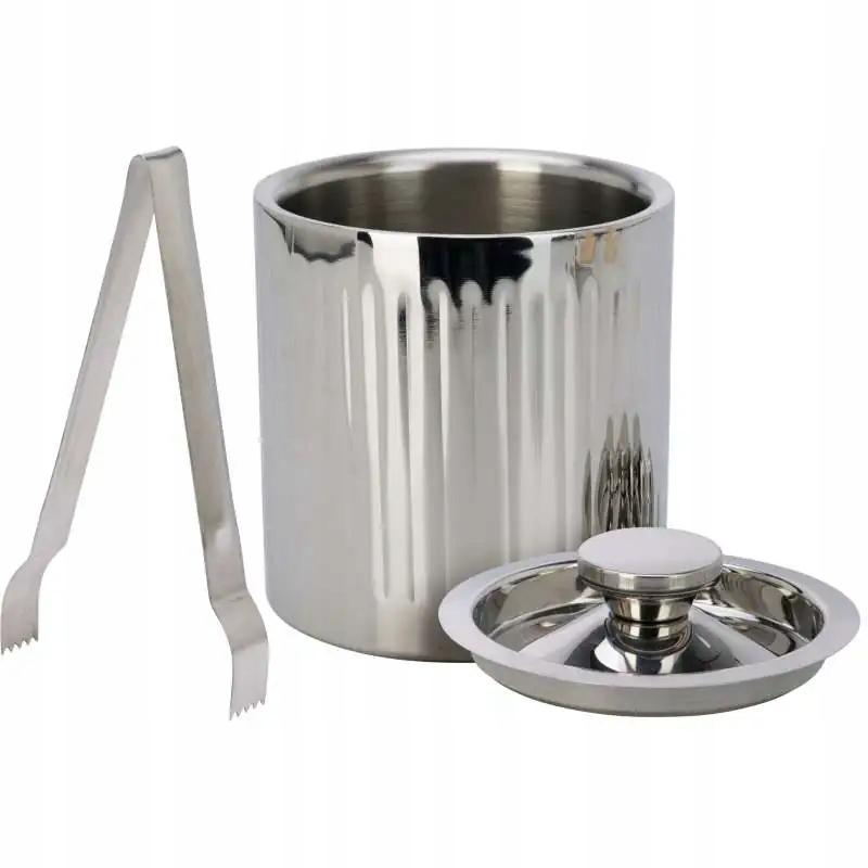 Wiaderko Do Lodu Pojemnik Metalowy Srebrny Ze Szczypcami 15,5x15,5x17 Cm