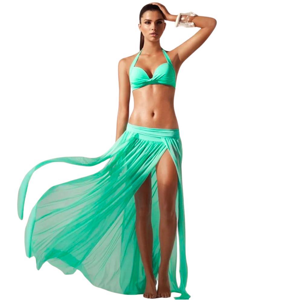 Long Maxi Dress Beach Skirt Tulle Mesh Pareo with Slit
