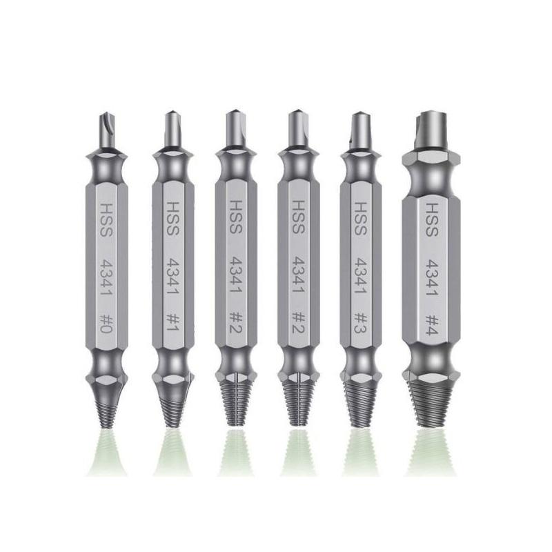 6PCS Screw Extractor Set for Damaged and Broken Bolt Removal High Hardness HSS Drill Bits with Double Headed Design
