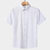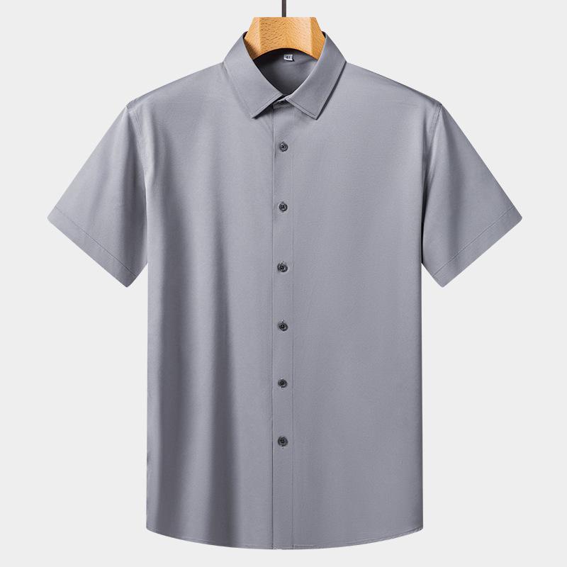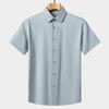 Men's Gray Short Sleeve Button Down Shirt - Ice Silk Casual Business Formal Summer Top