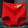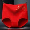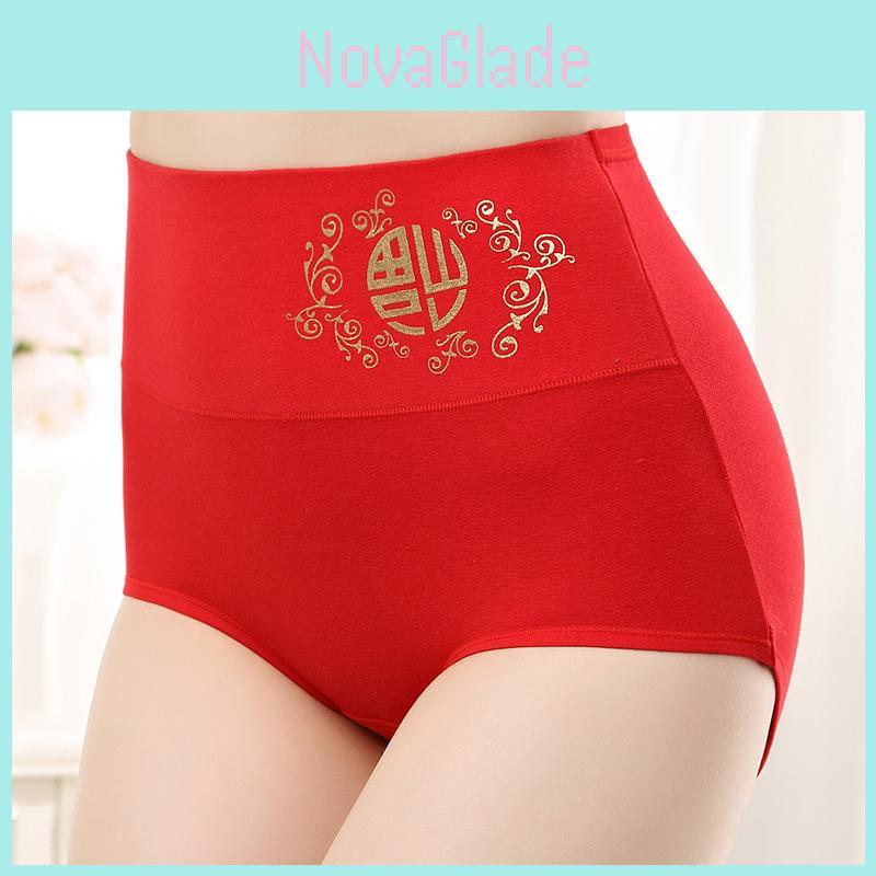 Celebratory Red High Waist Cotton Underwear With Golden Print For All Seasons