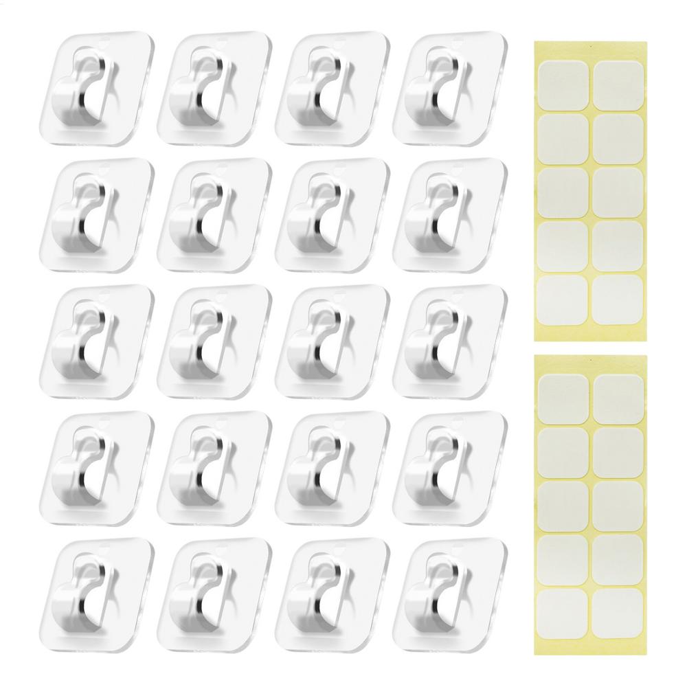 20pcs Clear Cable Clips Invisible Adhesive Wire Holders Damage-Free Cable Management For Lights Wires Home Mini Light Clips