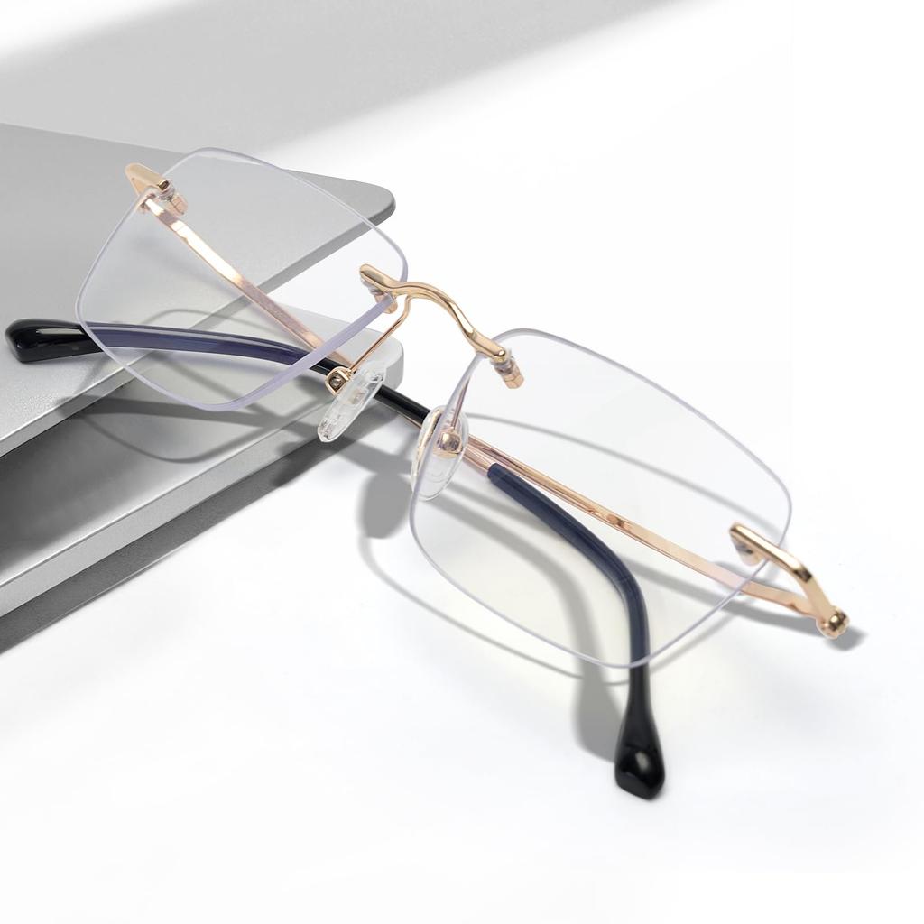[CEETOL] Wide and Bright Field of View Rimless Reading Glasses for Men and Women, Stylish, Ultra-Thin Lenses, Blue Light Blocking, UV Protection, PC G