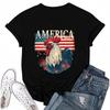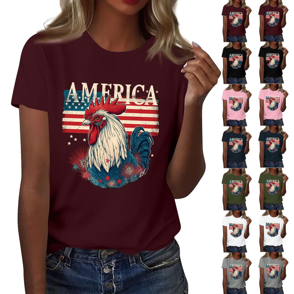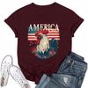 Women's Round Neck Casual Independence Day Printed Short Sleeve T-Shirt Top