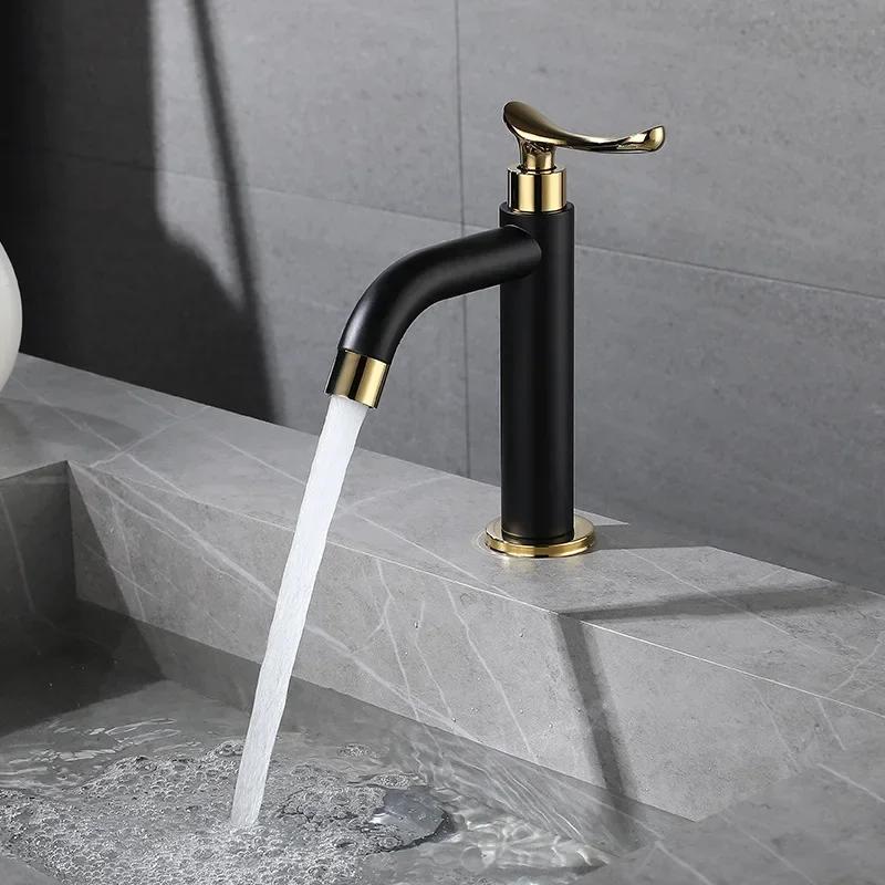 Bathroom Basin Faucet Single 304 Stainless Steel Cold Water Bathroom Sink Faucets Black and Gold Single Handle Washbasin Tap
