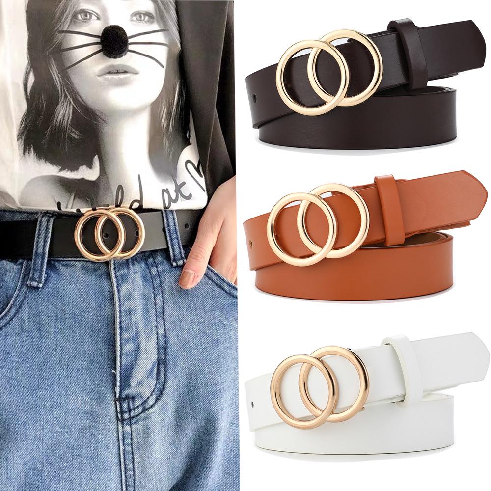 Women's Retro Double Round Buckle PU Leather Belt for Jeans