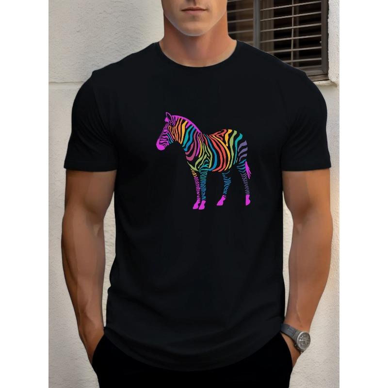 European Sizes Men's T-Shirt - Casual Crew Neck Summer Tee with Bold Zebra-like Pattern - Lightweight Shirt for Parties, Outings & Casual Attire