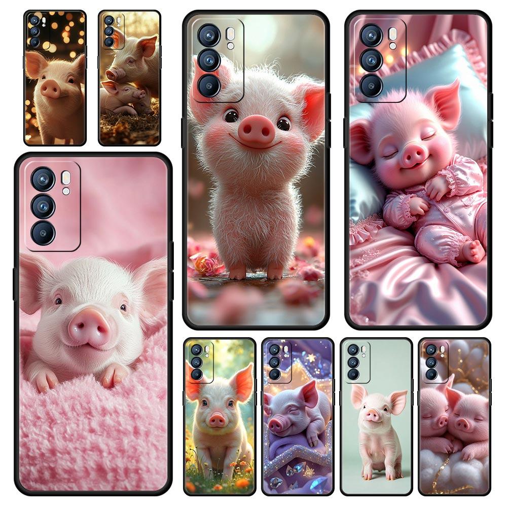 Cute Pig Phone Case For Oppo A17 A31 A54 A57 A78 A79 A98 Find X5 X6 Reno 6 7 8 10 11 12 13 F Pro 5G Soft TPU Cover Fundas Capas