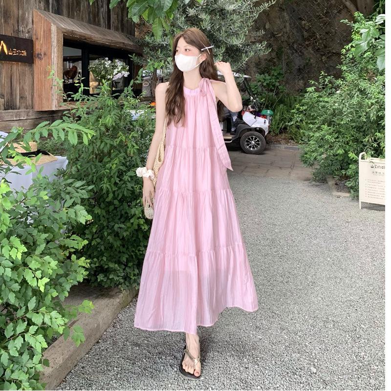 Seaside Vacation Wind Neck Sling Dress Women's Summer Gentle Wind Temperament Beach Dress Fairy Long Dress