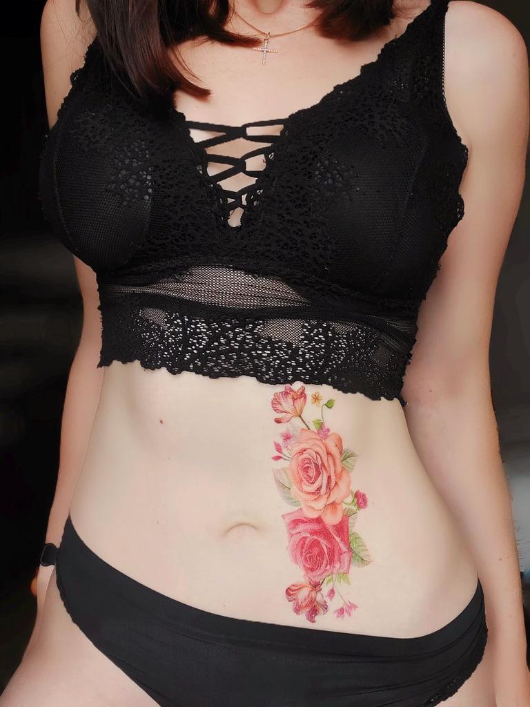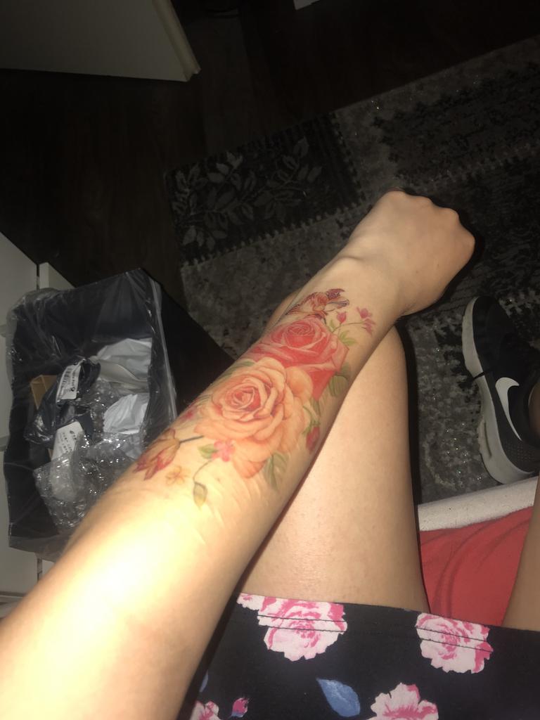 אמנות גוף לנשים עמיד למים אדמונית פרח זרוע רגל חזרה מדבקת קעקוע זמני