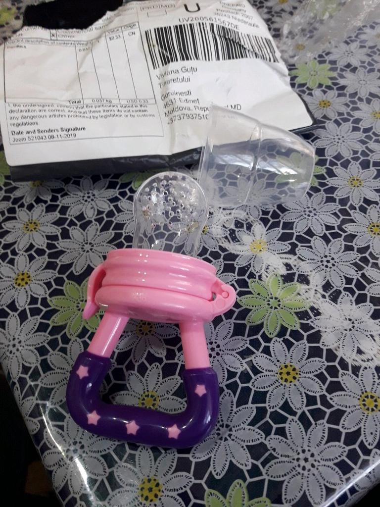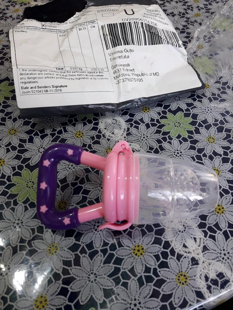 Pacifier teether to add fruit to the baby. So cute. It arrived in 20 days to Spain. I recommend the seller and the final product