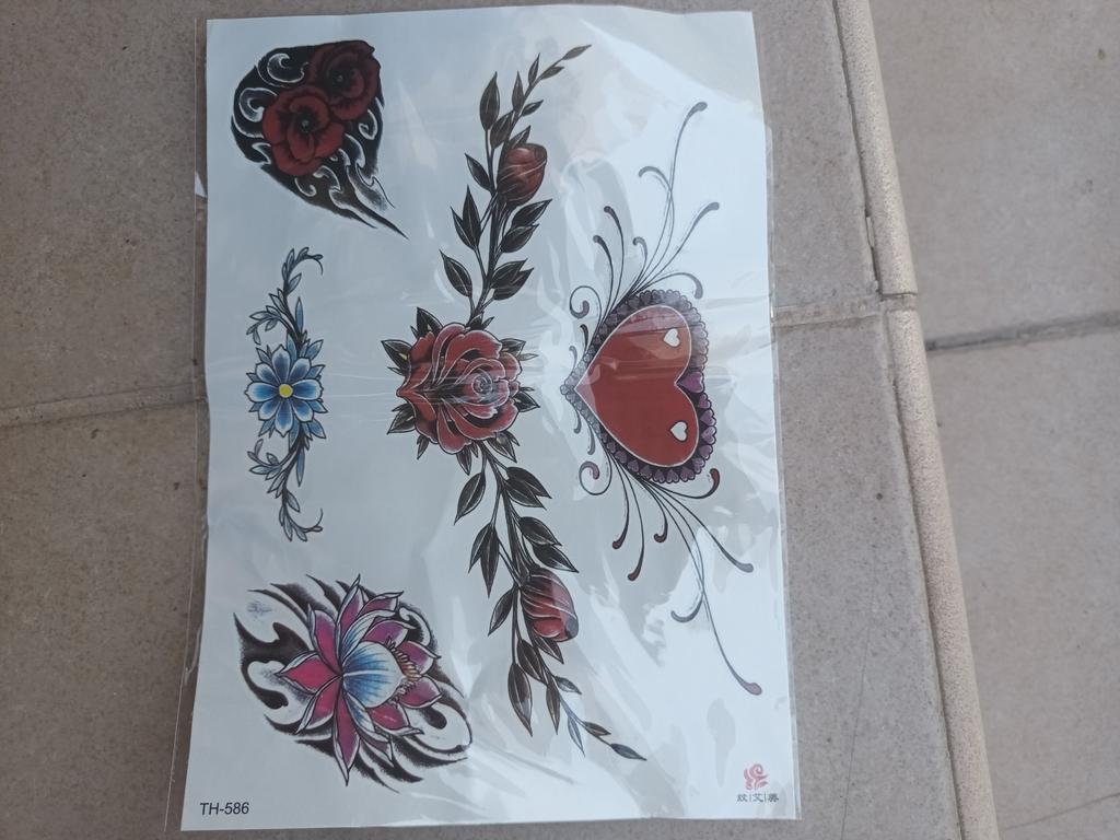 1 PC שחור טוליפ קעקועים מדבקות נשים זרוע אמנות צמיד קעקוע זמני פרפר ורד שרשראות חזה