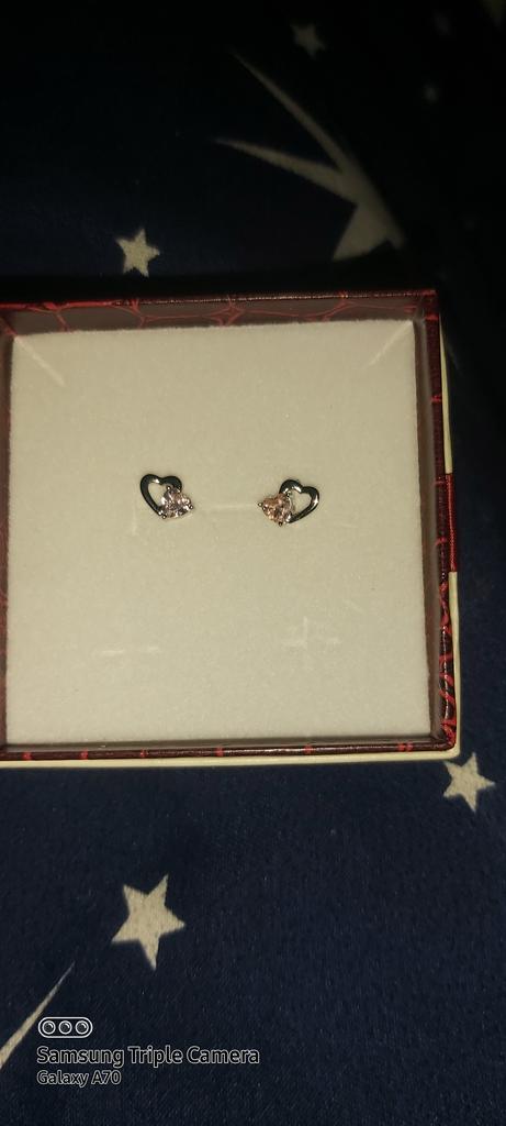 WOSTU כסף סטרלינג אמיתי 925 צורת לב כפול ורוד CZ עגילים רומנטיים לנשים