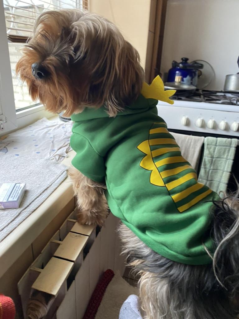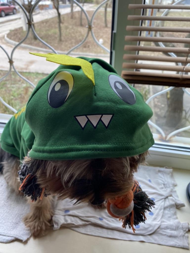 Now I have my own personal dragon 🐉 Martin is very happy 😁 The jacket is warm, a great find for cold weather. Among several options, I stopped at the dragon; he is bright and funny This time I ordered 2XL and did not miss: although our boy is no longer growing, in this size he does not squeeze anywhere and the dog can move freely - this is the most important thing ❤️ I recommend it, the delivery is fast, the parcel was assembled. The price is very nice