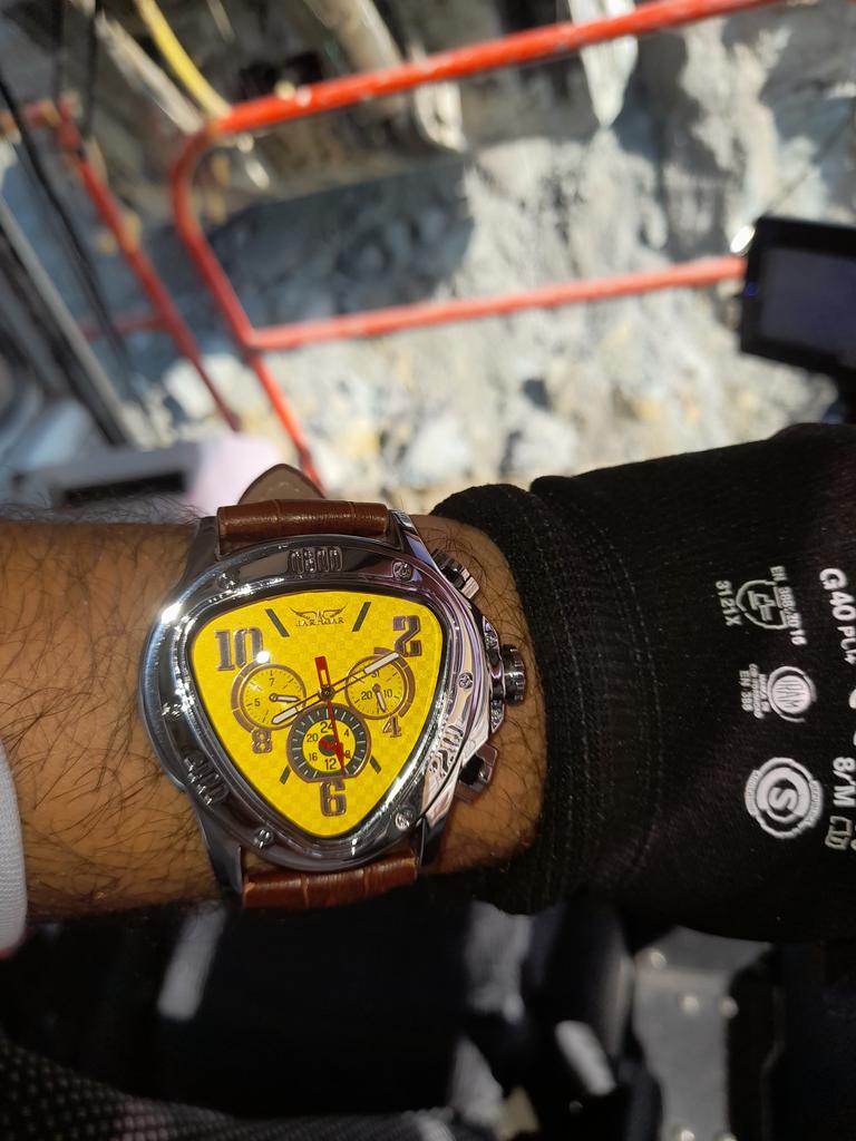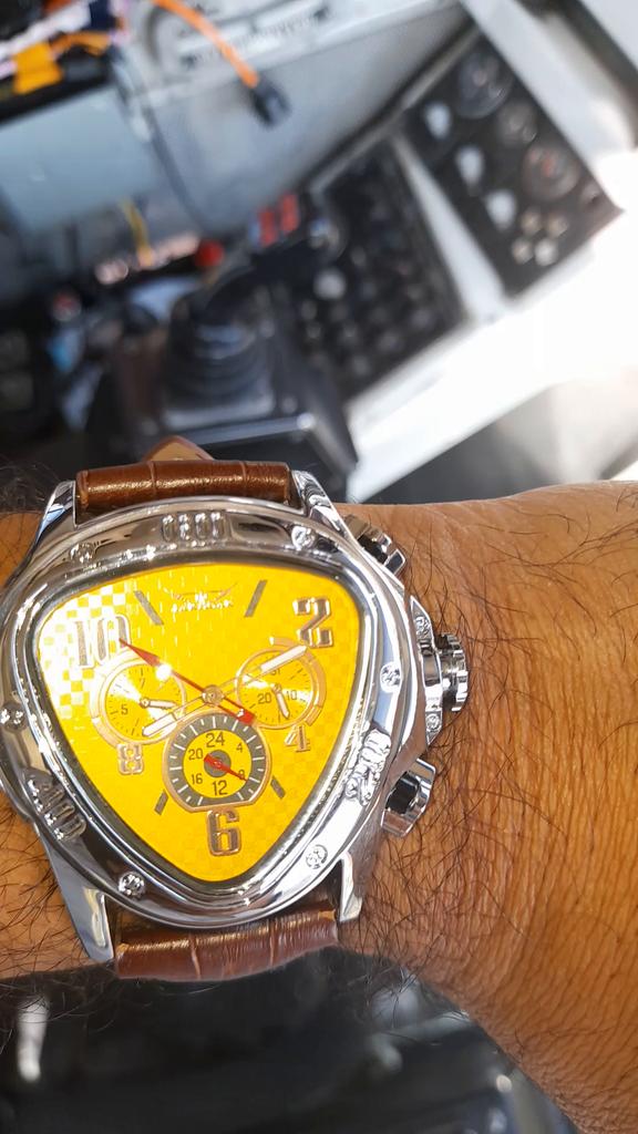 Jaragar ספורט מירוץ עיצוב גיאומטרי משולש טייס עור אמיתי גברים שעון מכני מוביל מותג יוקרה שעון יד אוטומטי