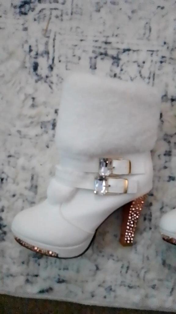 מגפי נשים פרווה נקבה עבה עם עקב גבוה פרווה ריינסטון מגפי שלג נשים מגפי שלג ליידי עקבים גבוהים