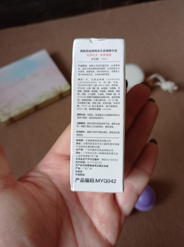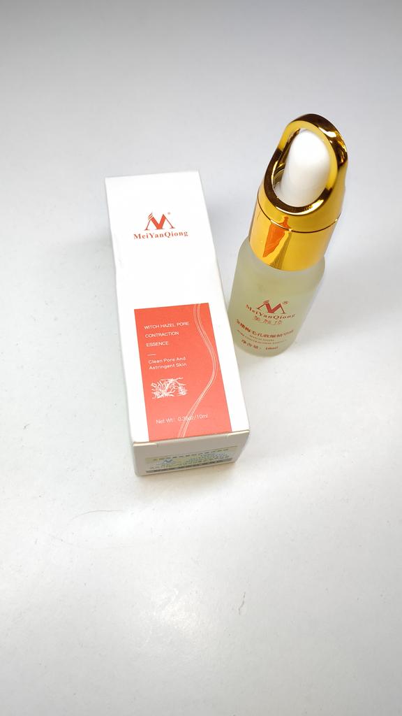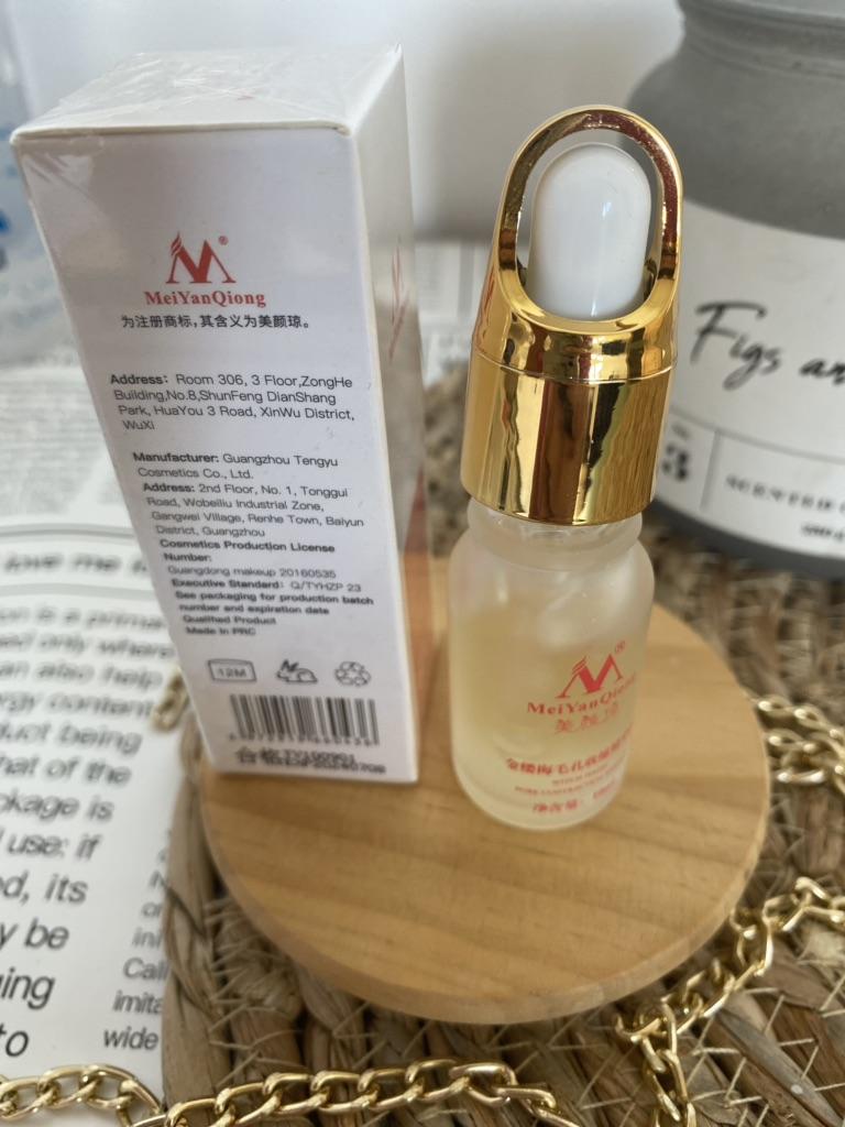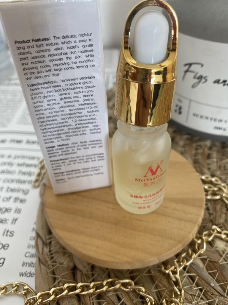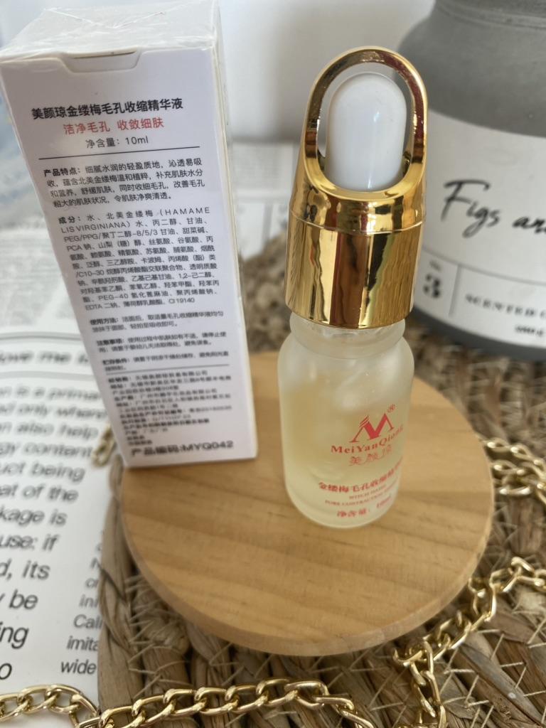 Good texture to shrink pores. Frosted glass bottle. The cover is golden. Looks like a trip. And it's nice to hold. The bottle is full, to the end. The essay itself is a bit frozen. Easy to apply, quickly absorbed. Mold does not appear on the skin. The skin is smooth, hydrated. I can't say anything about shrinking pores. I only used it twice. The seller sent everything quickly. Track number partially tracked. Delivery in France at 3 weeks