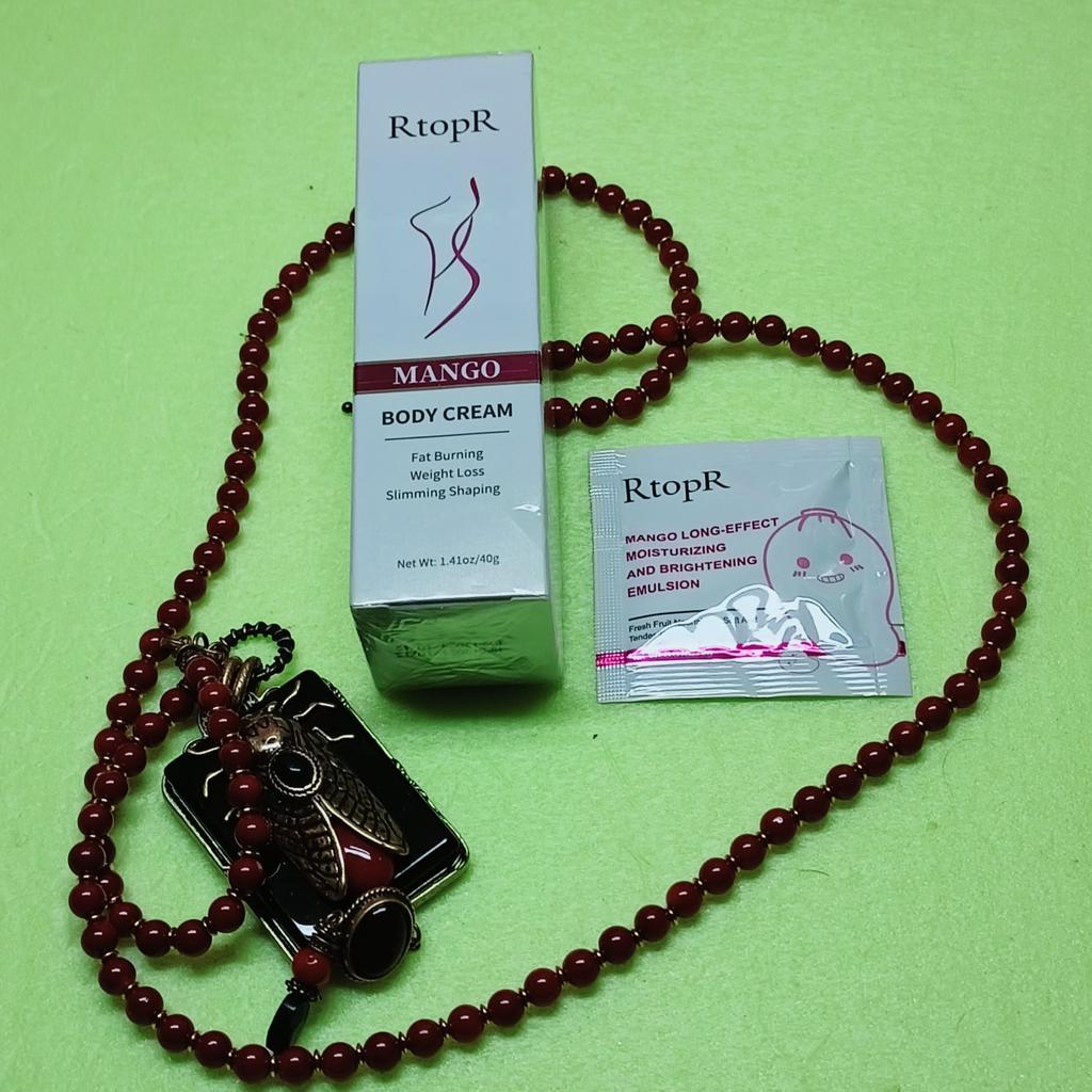 🥭 Mango Slimming Cream 🥭 Brand: RtopR ⭐⭐⭐⭐⭐ This product has been bought more than 10.000 times so far! And it has 4.4 stars out of 5! Wow that's a huge success if you ask me! I finished couple of bottles of this cream before and I like it. This cream helps firming the loose skin and reducing cellulite while giving good hydration to skin. It contains mango extract and they have a great smell. How to Use: 1) Apply proper amount of the cream to the areas you want to be thinner or you want firmer skin... 2) Massage cream until it is fully absorbed by your skin. 3) Then wrap that part with plastic wrap for 30-40 minutes. The total amount is 40gr. The box was sealed with a plastic wrap, and also the tube was. Mango cream series of RtopR brand is very good.