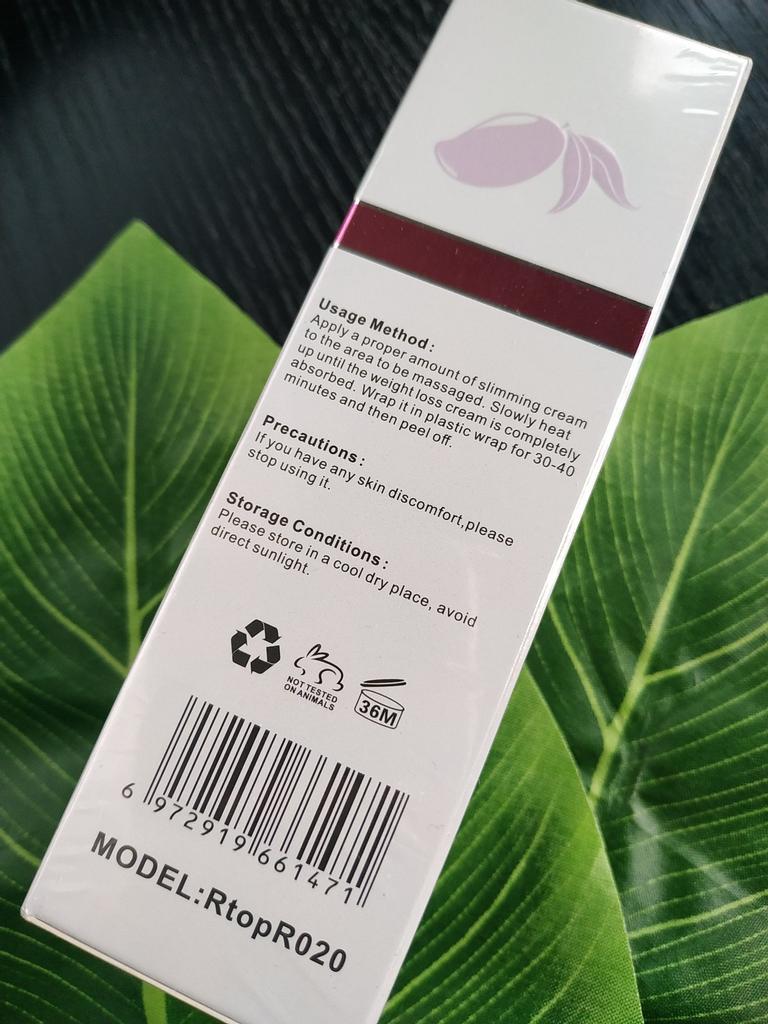 Great quality massage cream supporting slimming! 👯♀️ It has the consistency of a standard cream with a sweet, slightly herbal scent. After applying it to the skin, massage the product in and then cover it with cling film. This is to reduce cream evaporation, increase body temperature and stimulate sweating. I admit that for the first time I am in possession of a cream with similar properties. I was impressed with the heat that is generated after applying the foil. As if my stomach ended up in a portable sauna! ♨️ The only discomfort was the unbearable itching and it's hard to tell if it's just a foil and sweat side effect, or an allergic reaction to any of the ingredients in the cream. I did not find any changes on the skin, rashes, etc., except for a slight redness, and after removing the foil, everything returned to normal. 🤷♀️ The tube is not particularly big, but it is sufficient to familiarize yourself with the product. The package included mango cream and a business card with other RtopR cosmetics for free. The package arrived in Poland in less than 3 weeks. It is also worth praising the fact that the cream of the product has not been tested on animals. ❤🐇 I recommend!
