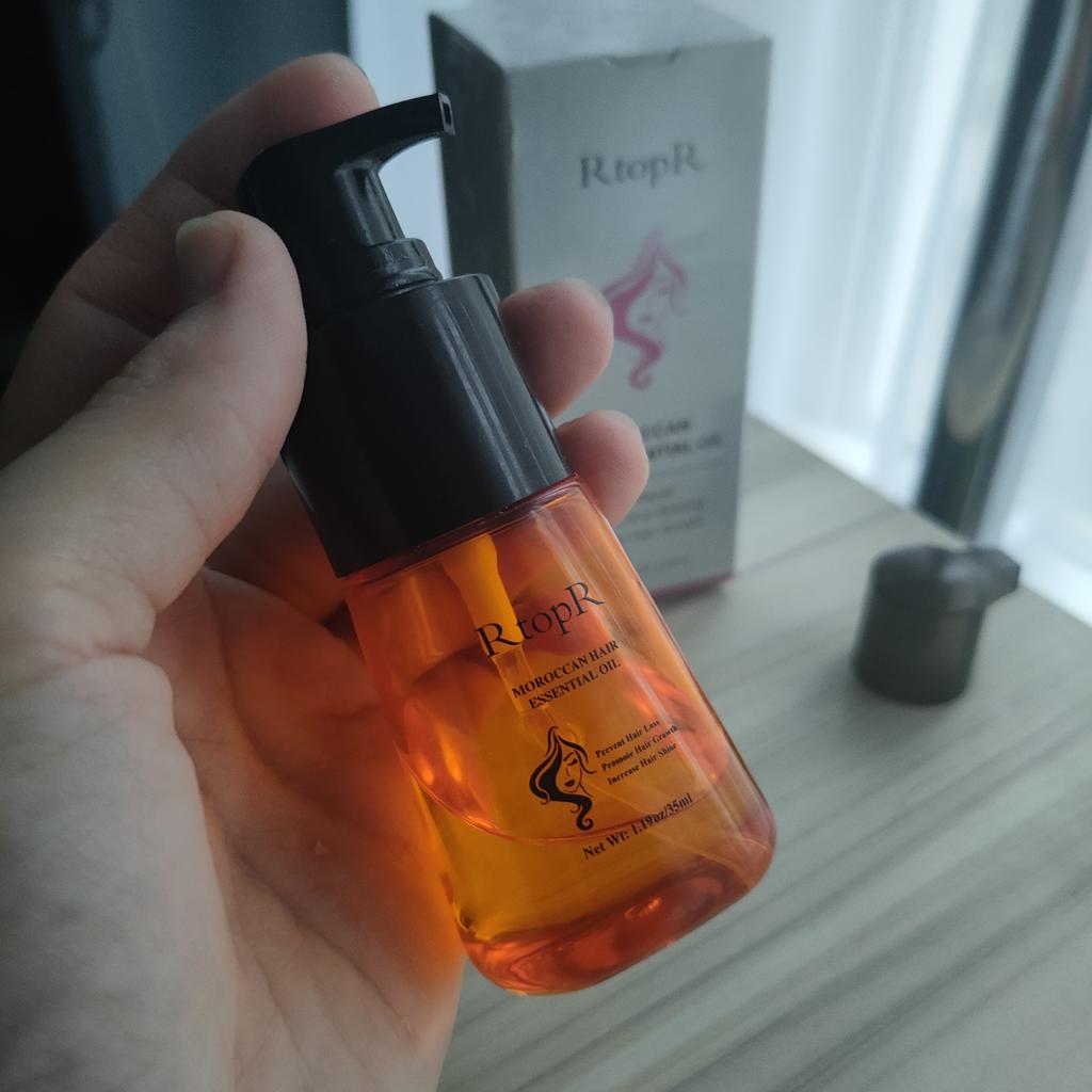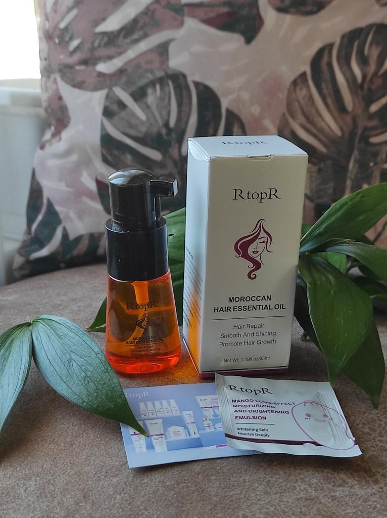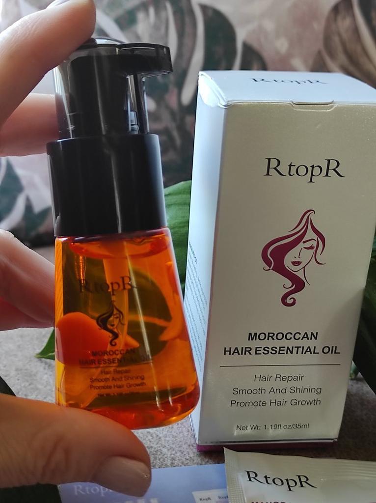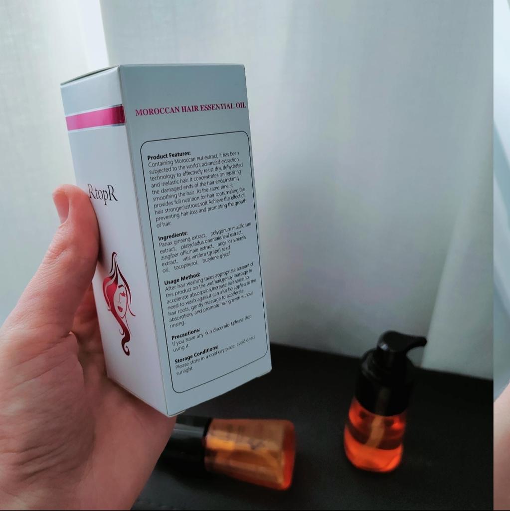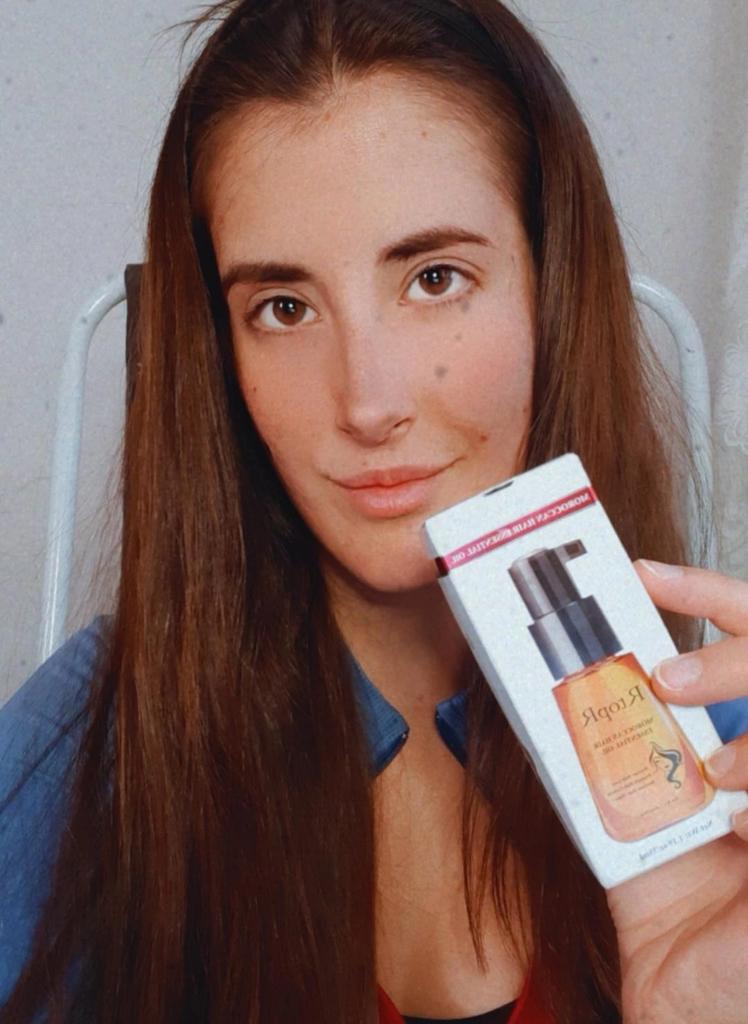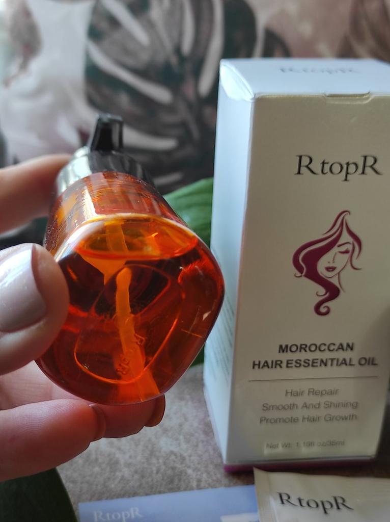 🛍️Essential oil for hair repair and growth🛍️ Rating: ⭐⭐⭐⭐⭐ 👈Essential oil has a very good smell, I have been using it for a long time and I really like it. The product is rich in Moroccan nut extract and can resist dry, inelastic hair effectively and nourish the hair. 👈 The actions of the essential oil according to the seller's information: • Repairs damaged ends of the ends of the hair •Helps prevent hair loss • Encourages hair growth •Smoothes the hair •Provide complete nutrition for the hair roots • Make the hair stronger, shiny and soft 👈Instructions for use: after washing the hair, take an appropriate amount of the product on the wet hair and massage gently to speed up absorption (no need to wash) 👈Essential oil has a cap on it and it came to me in a beautiful, closed box and protected with plastic wrap📦 In addition, I also received a small sample with the product. 👈Product content: 35 ml 👈 Many thanks to RtopR for sending me the package! 👈 The product reached me in about 65 days, it is recommended to buy 🛍️ (the first product that appears under the post)
