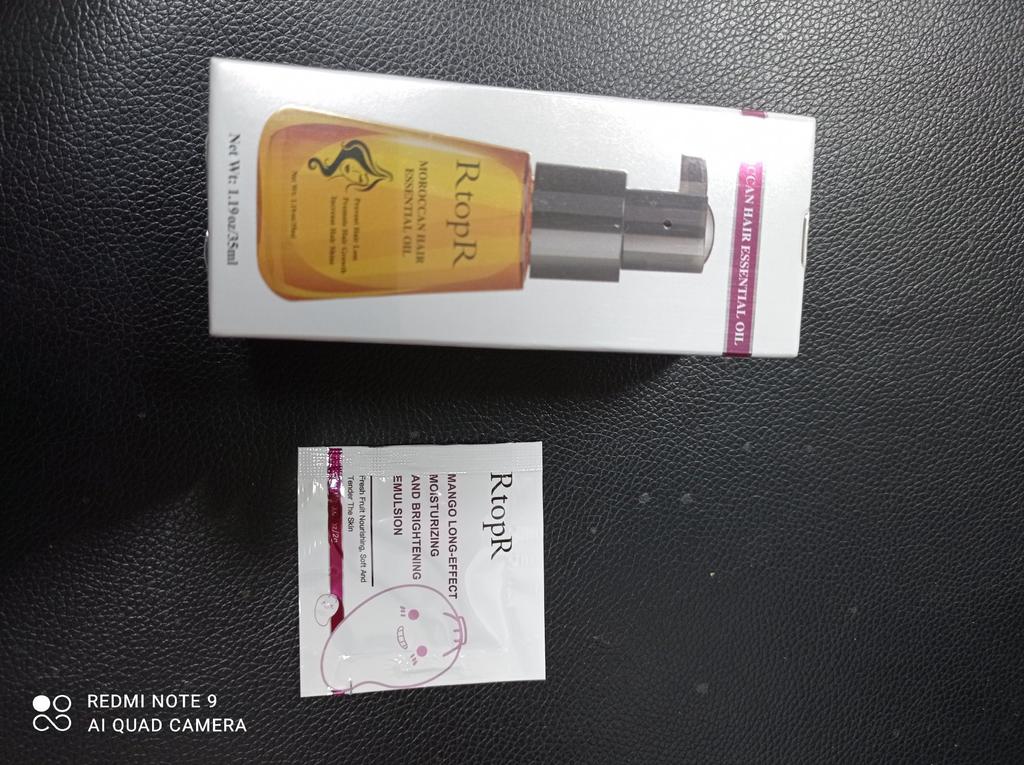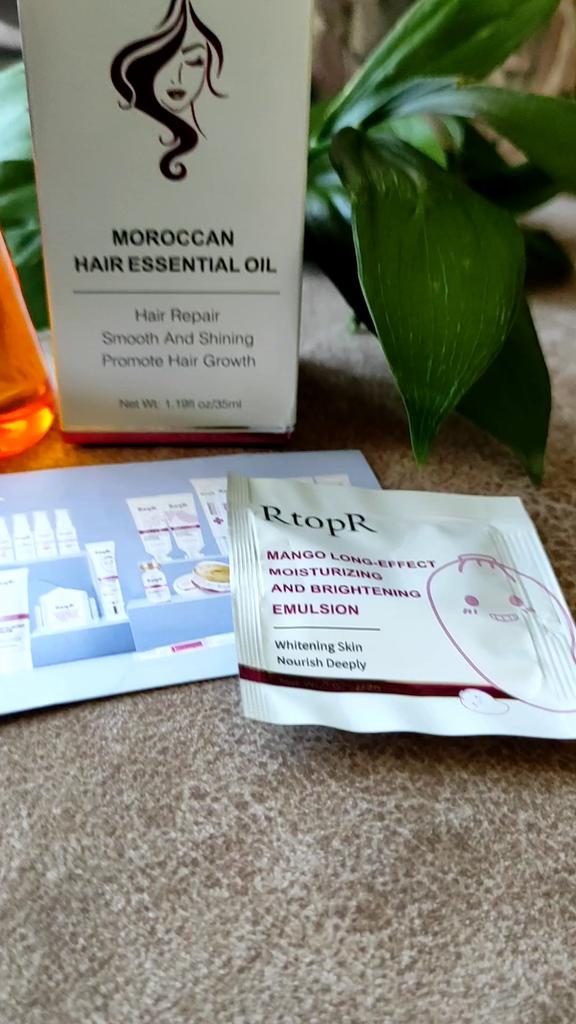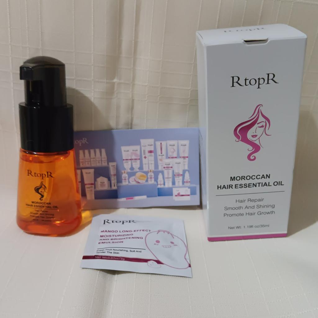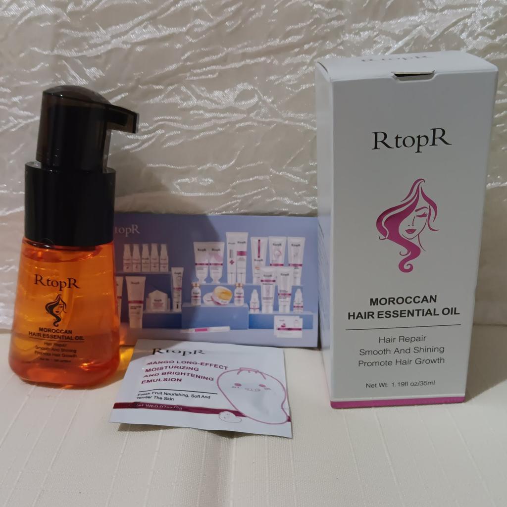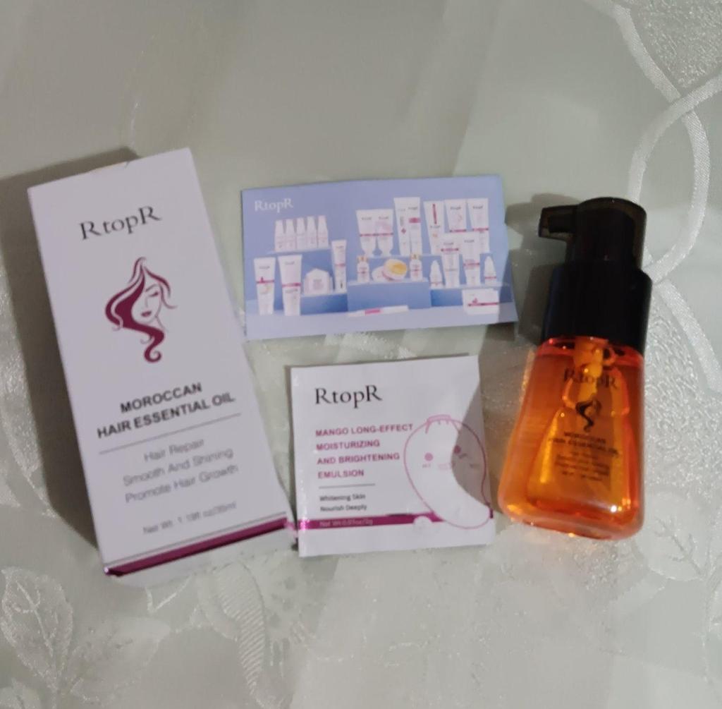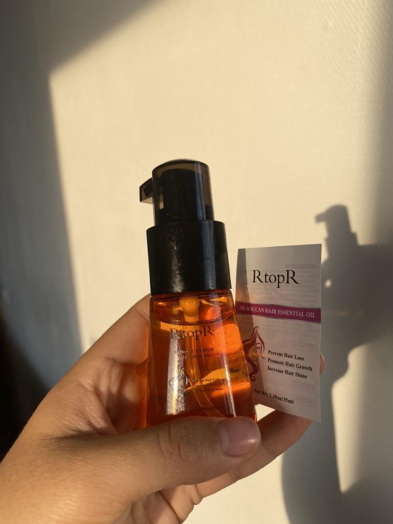 🛍️Essential oil for hair repair and growth🛍️ Rating: ⭐⭐⭐⭐⭐ 👈Essential oil has a very good smell, I have been using it for a long time and I really like it. The product is rich in Moroccan nut extract and can resist dry, inelastic hair effectively and nourish the hair. 👈 The actions of the essential oil according to the seller's information: • Repairs damaged ends of the ends of the hair •Helps prevent hair loss • Encourages hair growth •Smoothes the hair •Provide complete nutrition for the hair roots • Make the hair stronger, shiny and soft 👈Instructions for use: after washing the hair, take an appropriate amount of the product on the wet hair and massage gently to speed up absorption (no need to wash) 👈Essential oil has a cap on it and it came to me in a beautiful, closed box and protected with plastic wrap📦 In addition, I also received a small sample with the product. 👈Product content: 35 ml 👈 Many thanks to RtopR for sending me the package! 👈 The product reached me in about 65 days, it is recommended to buy 🛍️ (the first product that appears under the post)