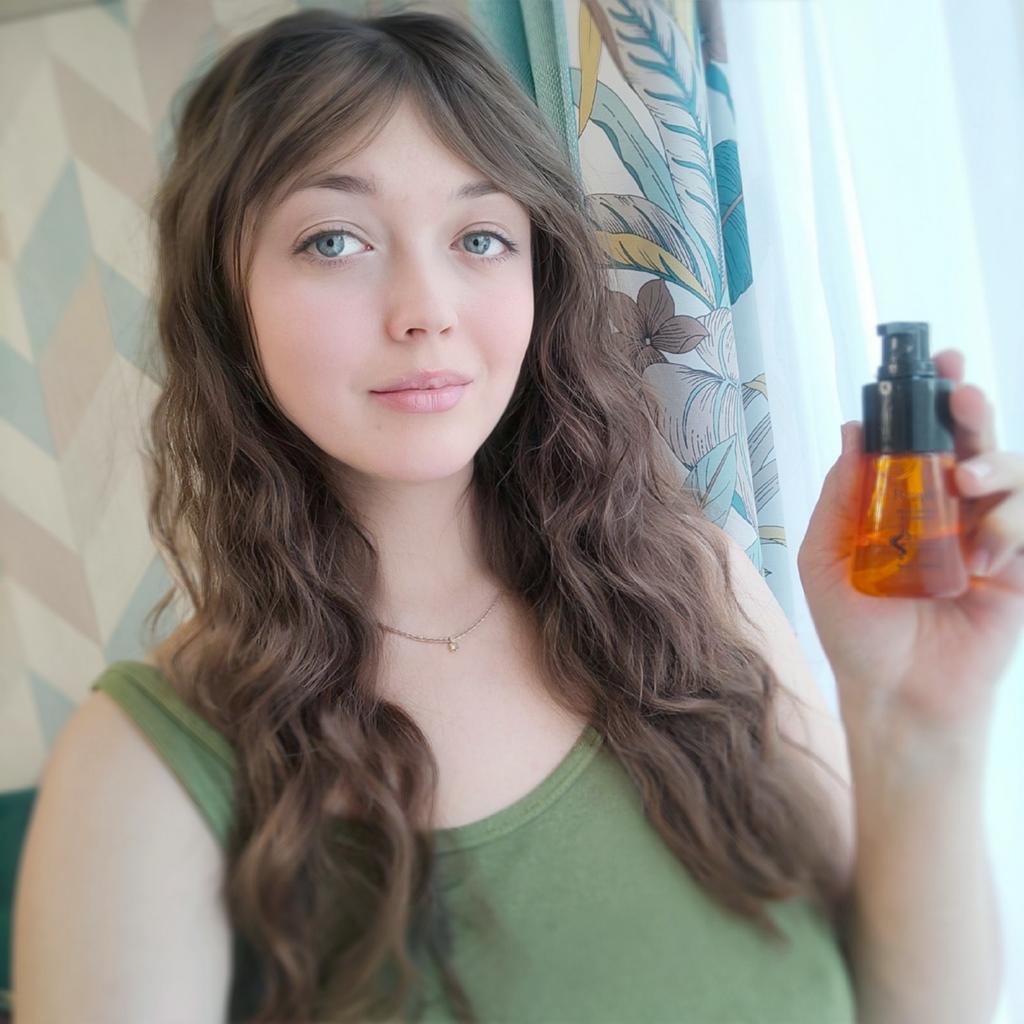 *Essential hair oil 💜 . The arrival time was 26 days to Spain (it is quite a long time) It came well wrapped in its box and sealed (sign that it has not been used) . The container is 35 ml but with a little you have, my hair is long and I have only sprayed it once. The bottle has a cap so as not to inadvertently hit it and spill the oil. . I have applied the oil to my damp hair after washing it, I have applied it from the middle to the ends since I have oily hair and if I apply it to the roots, perhaps it can be oiled more. Then I combed my hair and it was very easy to comb without pulling, it left my hair very soft and silky, I don't like the smell of the oil but it doesn't stick to your hair. . This product has surprised me a lot and I will repeat when I run out 🤩🤩😍 . For more content you can follow me on IG: @mariterejimenezm