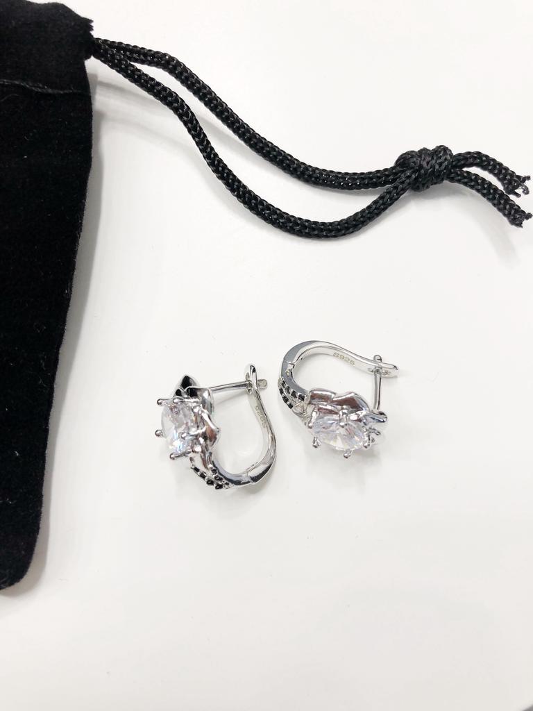 Black Awn תכשיטים תכשיטים שחורים אבן לבנה עגילי חישוק פרחים