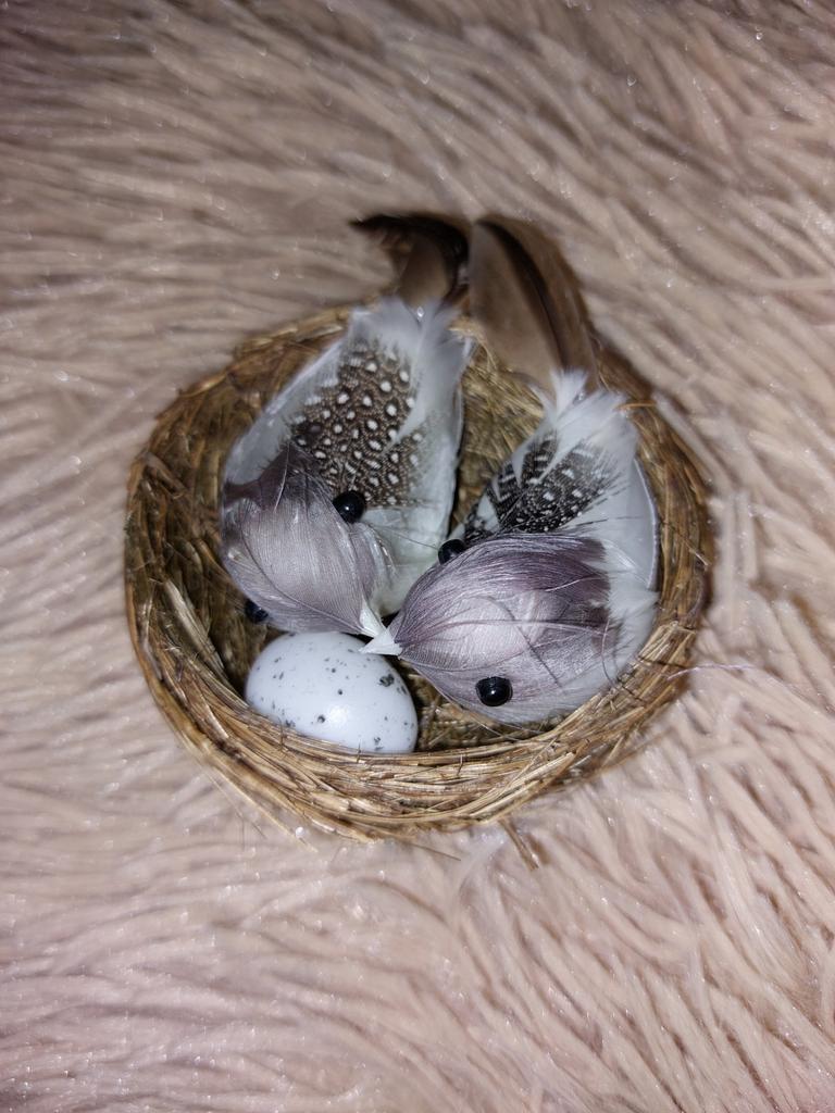1 סט ציפורים מנוצות ריאליסטיות עם קן וביצת ציפורים, ציפורים מלאכותיות למסיבות גן קישוט דשא למכונית הבית