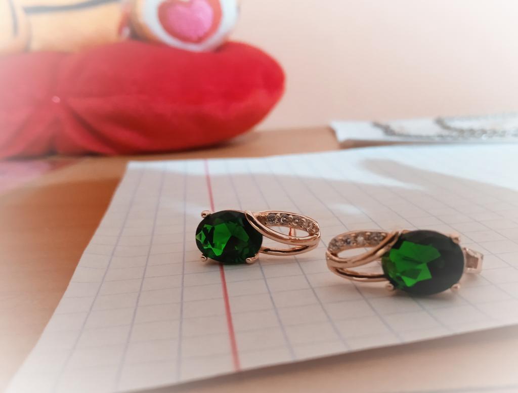 עגילי וו אבן חן בחיתוך סגלגל בגזרה ירוקה בצבע זהב כלה מתנות תכשיטי חתונה